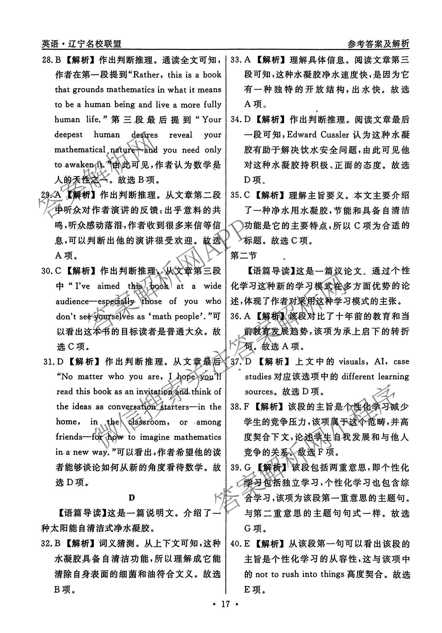辽宁省名校联盟2024年高考模拟卷(调研卷)(四)4英语答案,目前分科卷答案网已经汇总了辽宁省名校联盟2024年高考模拟卷(调研卷)(四)4英语答案的各科答案和试卷,获取更多衡水名师卷答案解析,请在关注本站。