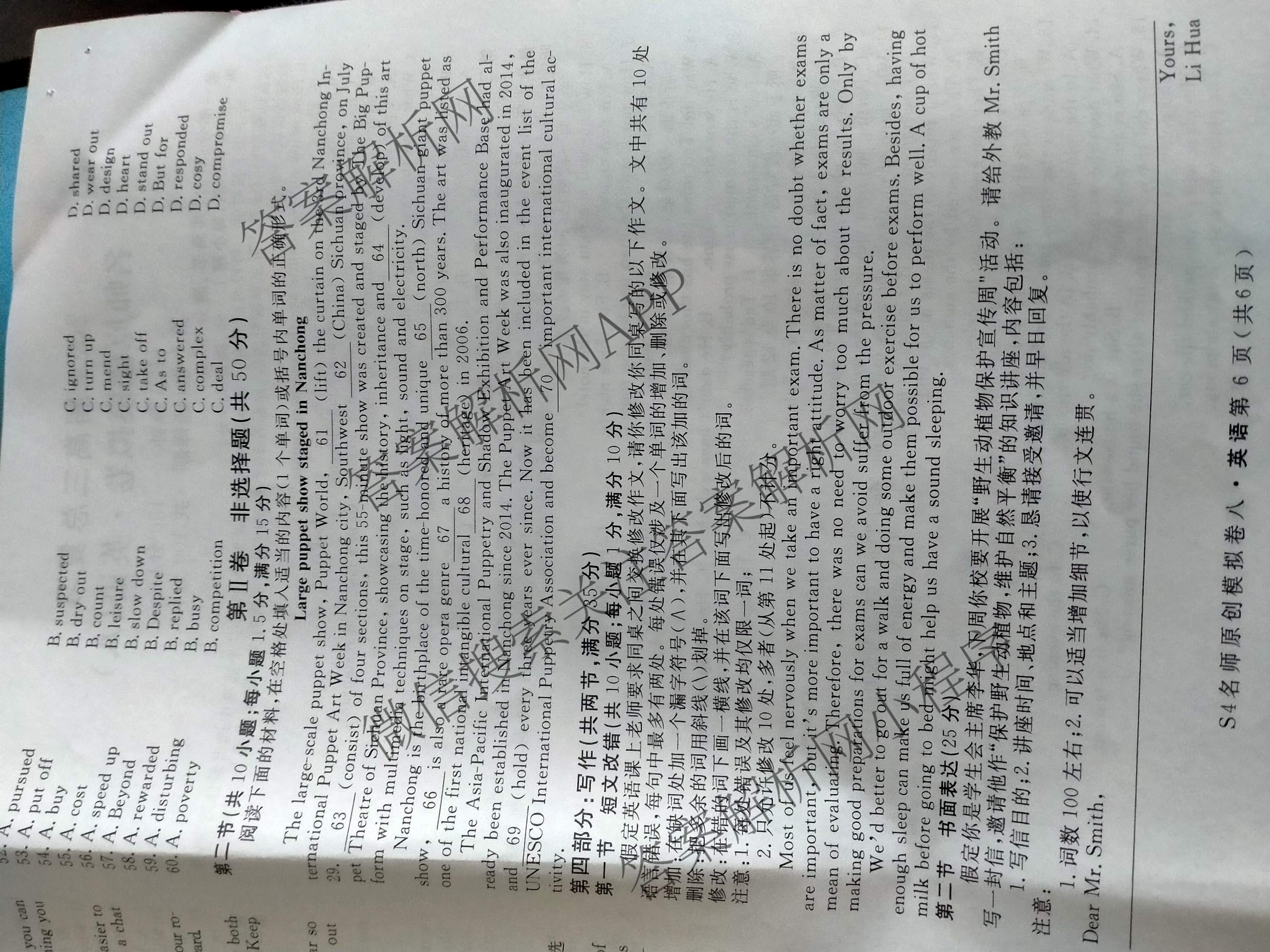 2024届高三总复习·名师原创分科模拟(八)8英语(S4)试题,目前分科卷答案网已经汇总了2024届高三总复习·名师原创分科模拟(八)8英语(S4)试题的各科答案和试卷,获取更多高三总复习·名师原创模拟答案解析,请在关注本站。