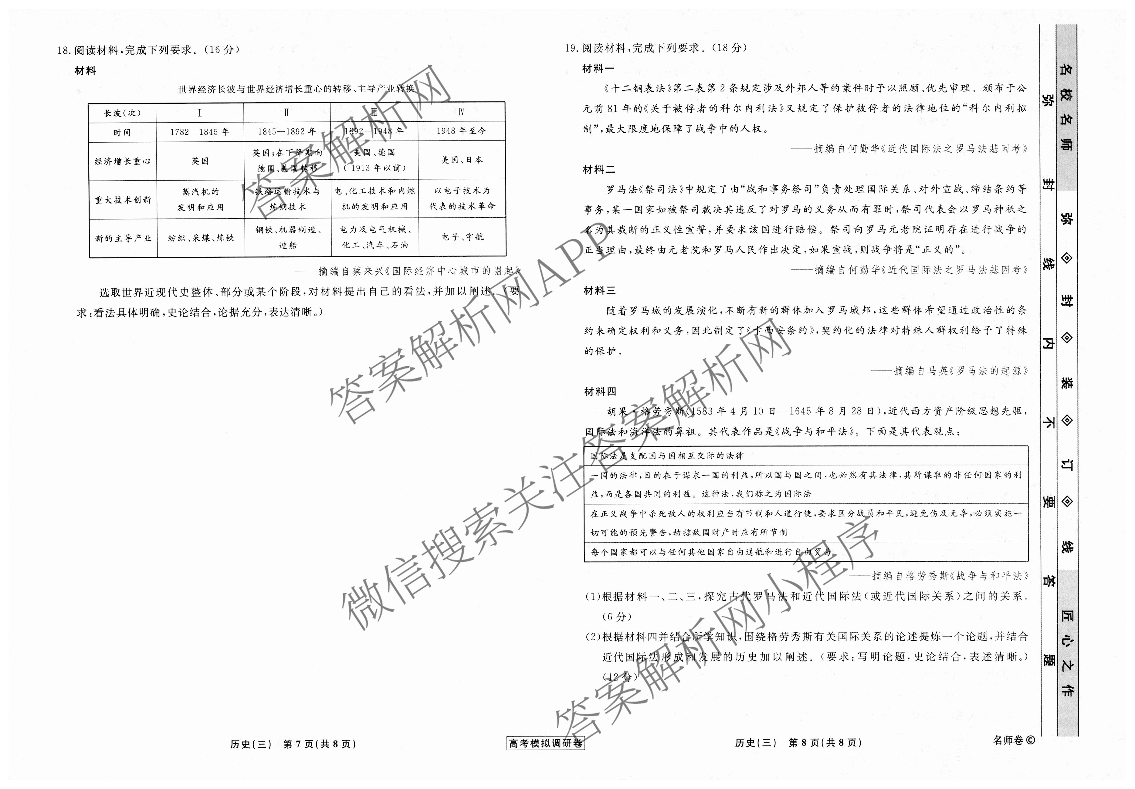 - (高三)衡水名师卷高考模拟调研卷 2024年普通高中学业水平选择性考试模拟 历史(双圆形)(三)3答案