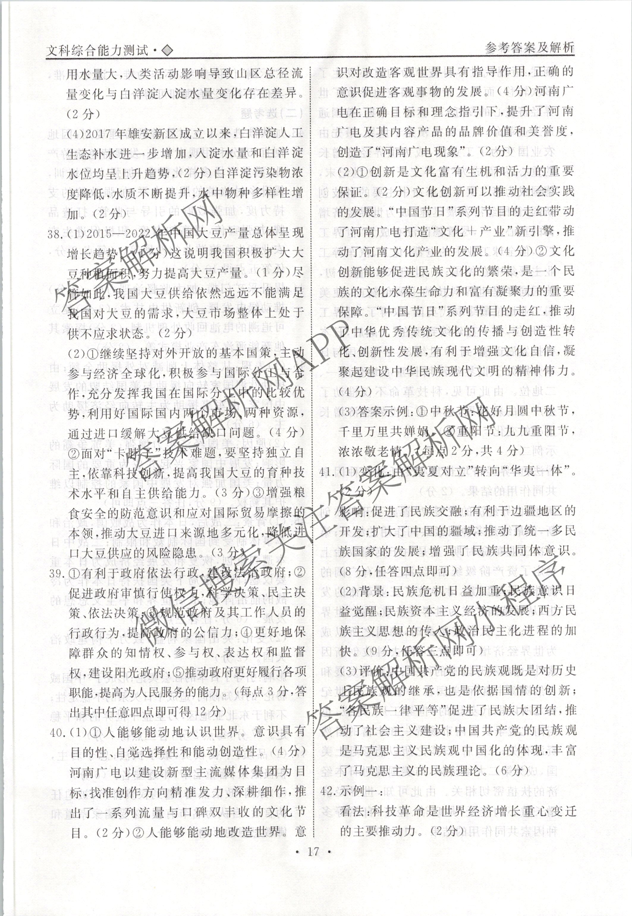 - (衡水名师卷)高考模拟调研卷 2024年普通高等学校招生全国统一考试模拟试题 文综(空心◇)(三)3答案