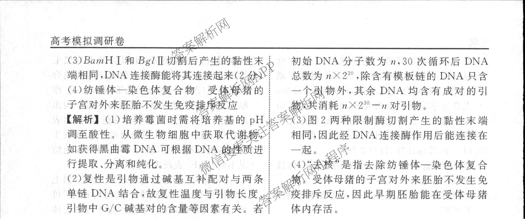 - [高三]衡水名师卷高考模拟调研卷 2024年普通高中学业水平选择性考试模拟试题 生物(双菱形)(三)3答案