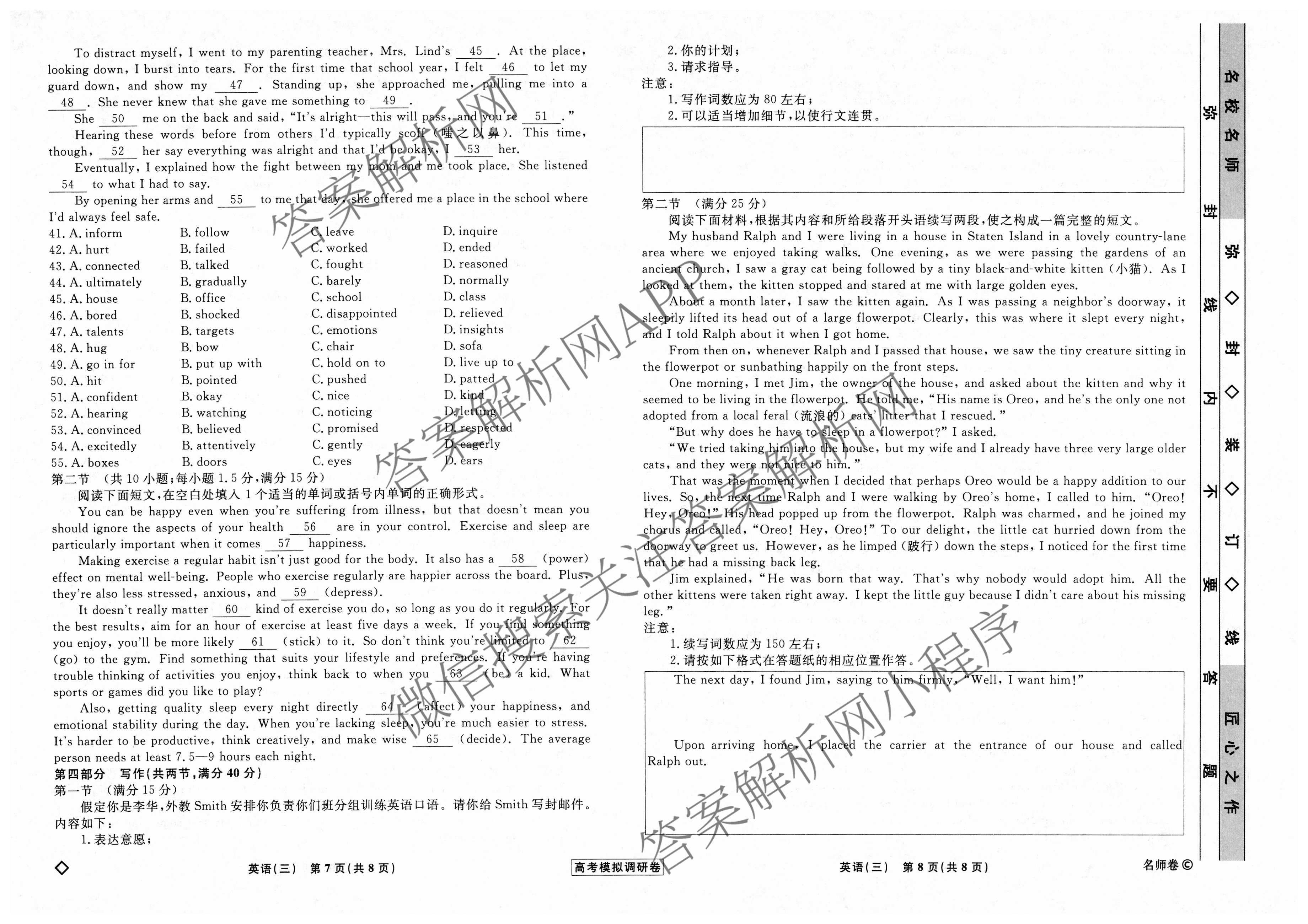 - [高三](衡水名师卷)·高考模拟调研卷 2024年普通高等学校招生全国统一考试模拟试题 英语(空心◇)(三)3答案