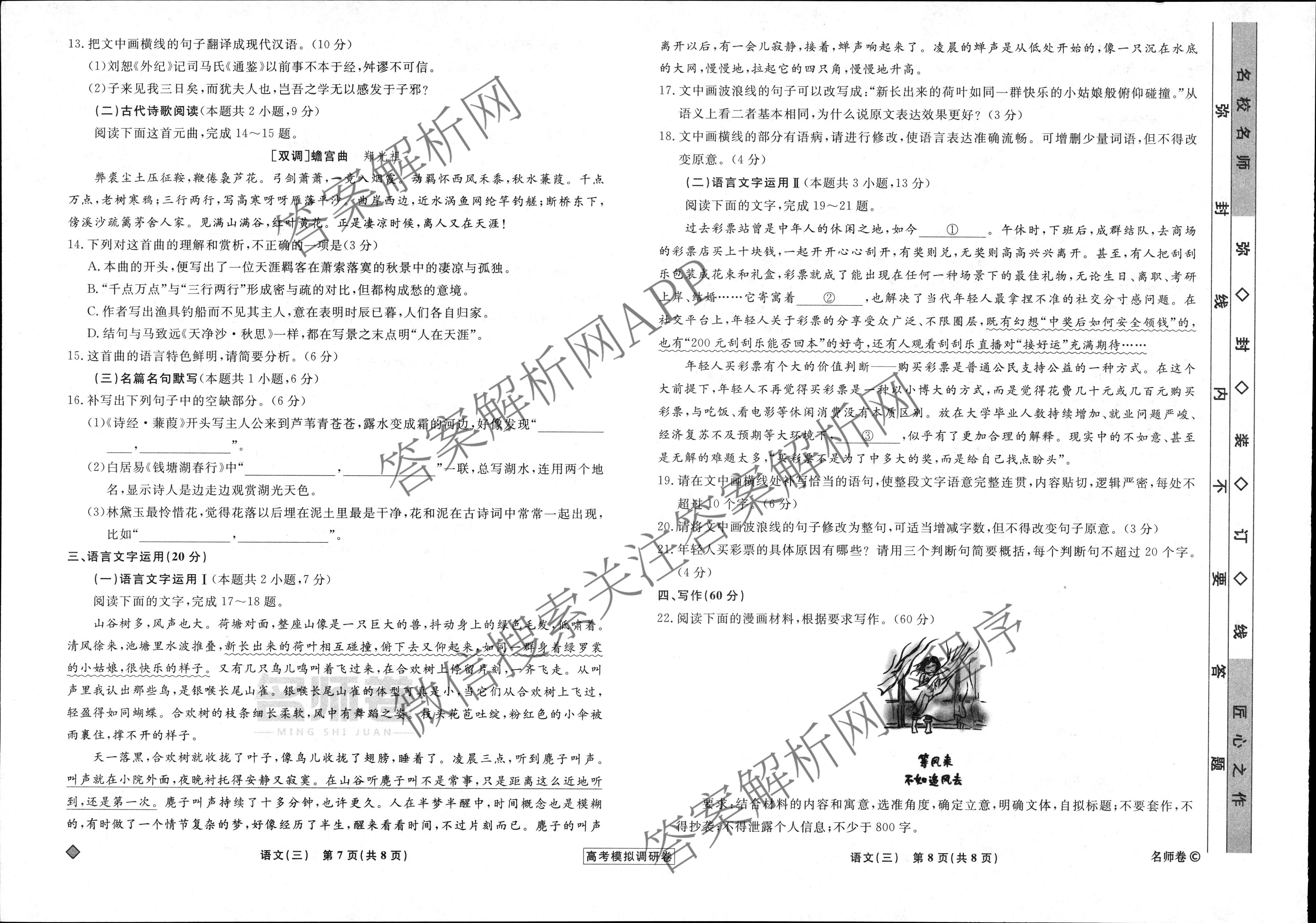 (衡水名师卷)·高考模拟调研卷2024年普通高等学校招生全国统一考试模拟试题 语文(实心◇)(三)3试题