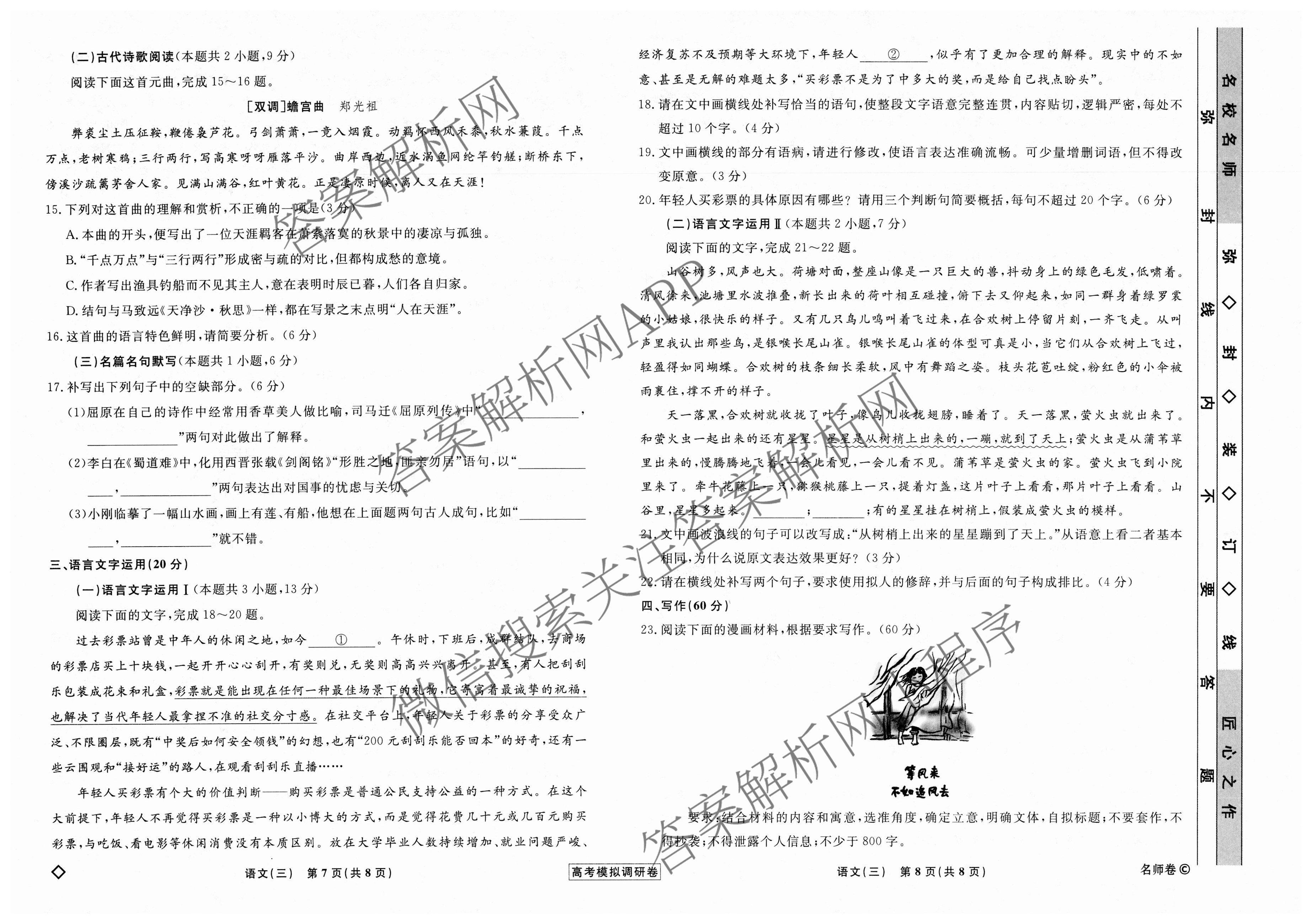 - (衡水名师卷)·高考模拟调研卷2024年普通高等学校招生全国统一考试模拟试题 语文(实心◇)(三)3试题