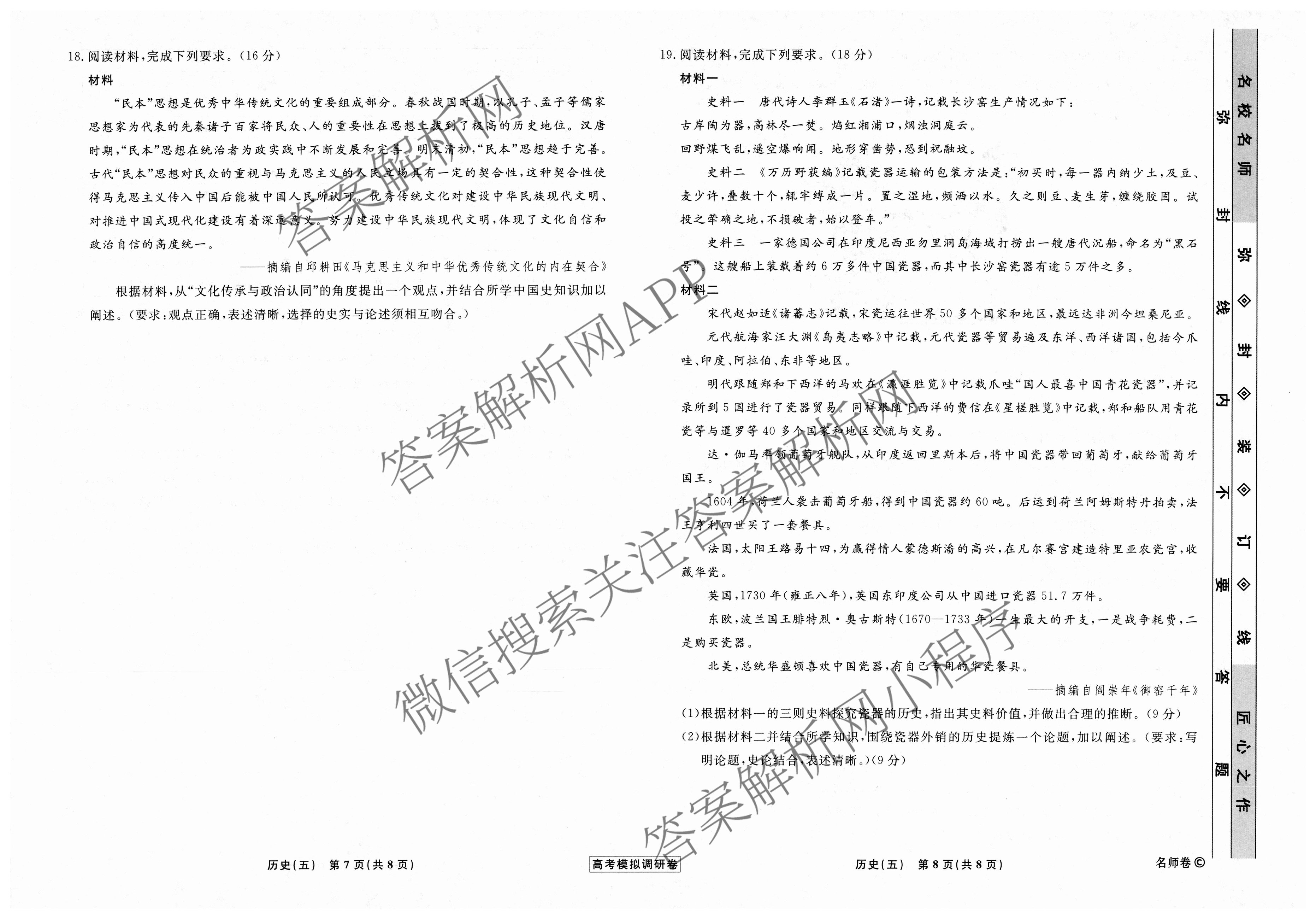 - 高三[衡水名师卷]高考模拟调研卷 2024年普通高中学业水平选择性考试模拟 历史(双圆形)(五)5答案