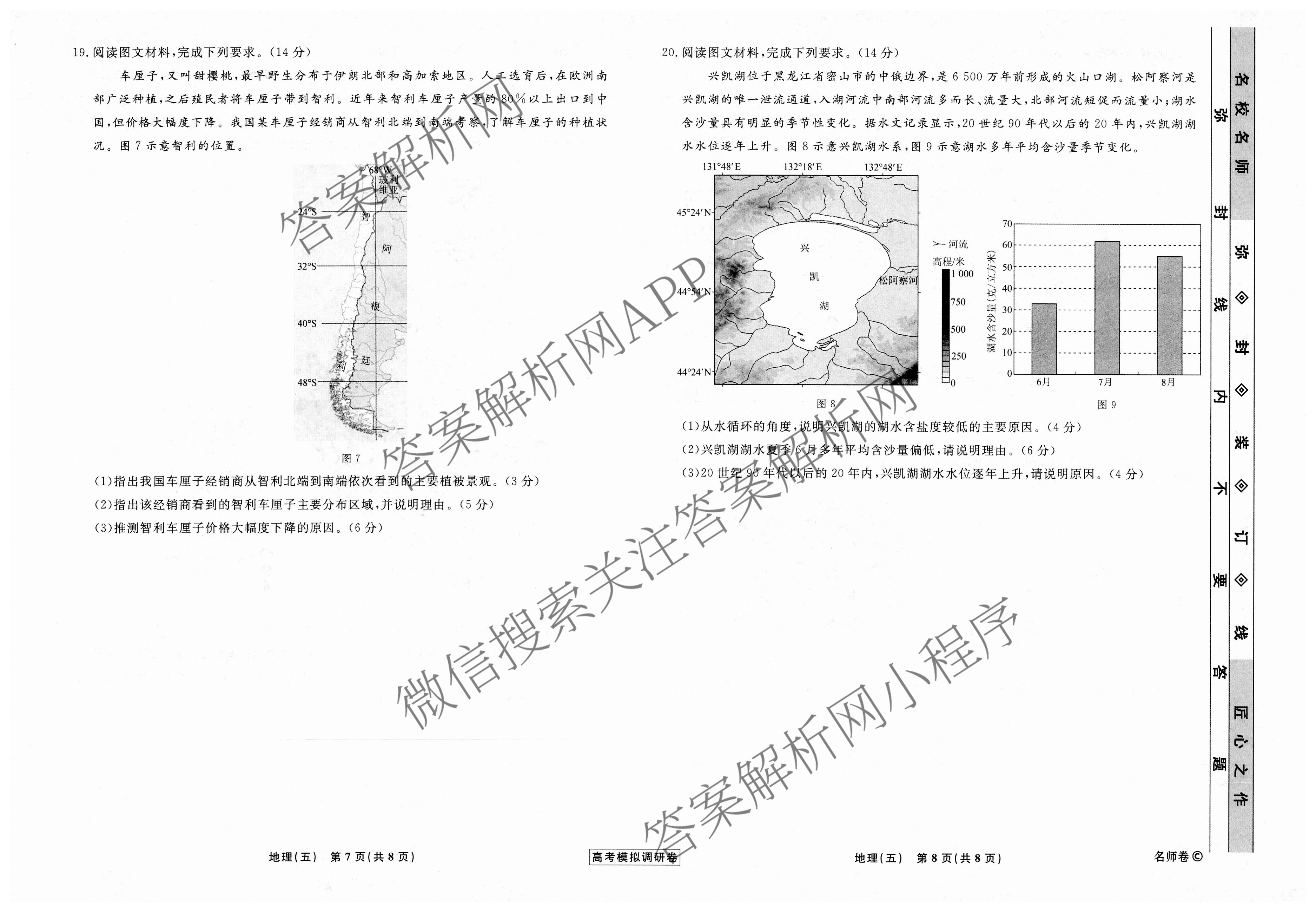 - [高三][衡水名师卷]高考模拟调研卷 2024年普通高等学校招生全国统一考试模拟试题 文综(实心◇)(五)5答案