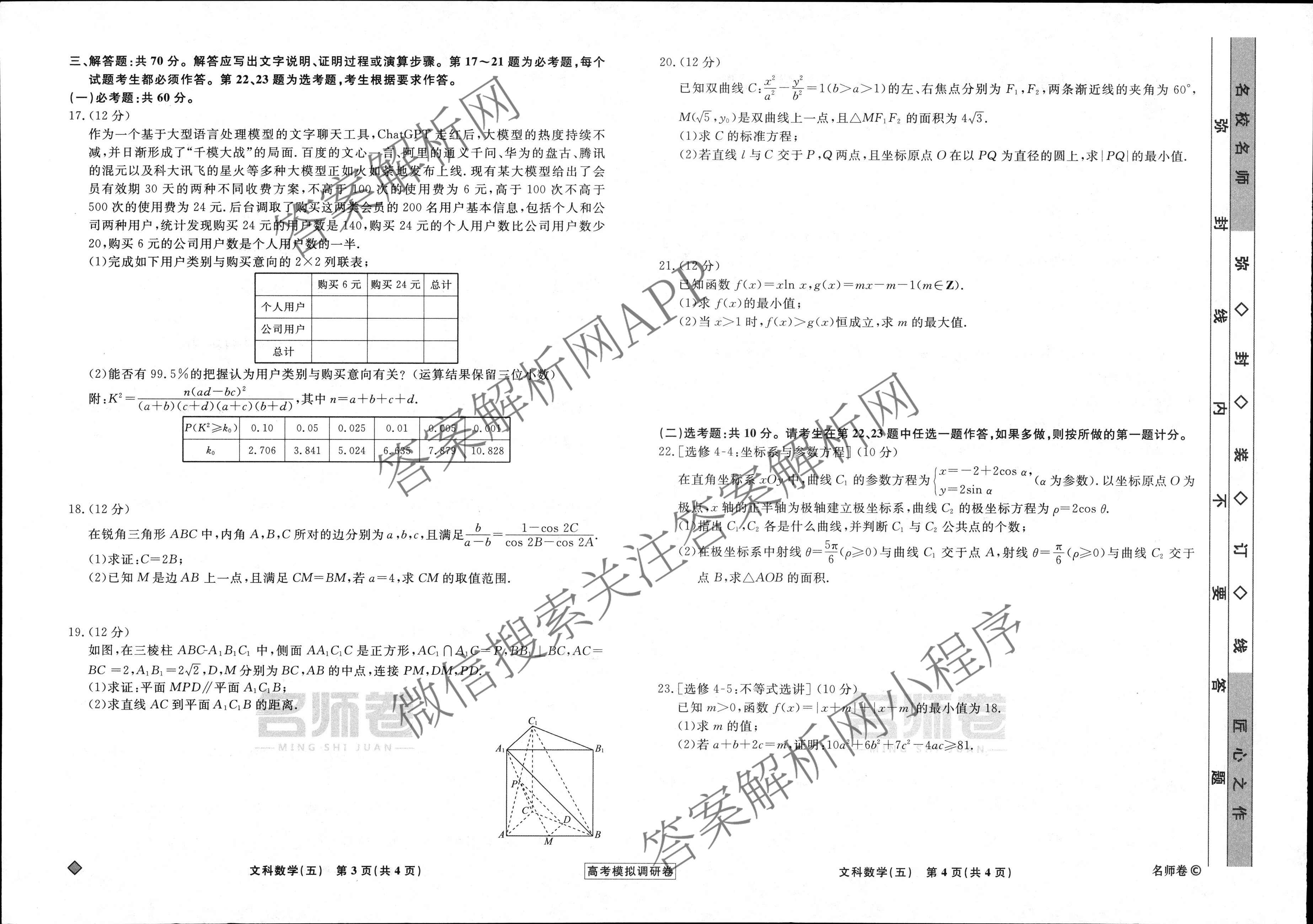 [高三](衡水名师卷)·高考模拟调研卷 2024年普通高等学校招生全国统一考试模拟试题 文数(实心◇)(五)5试题