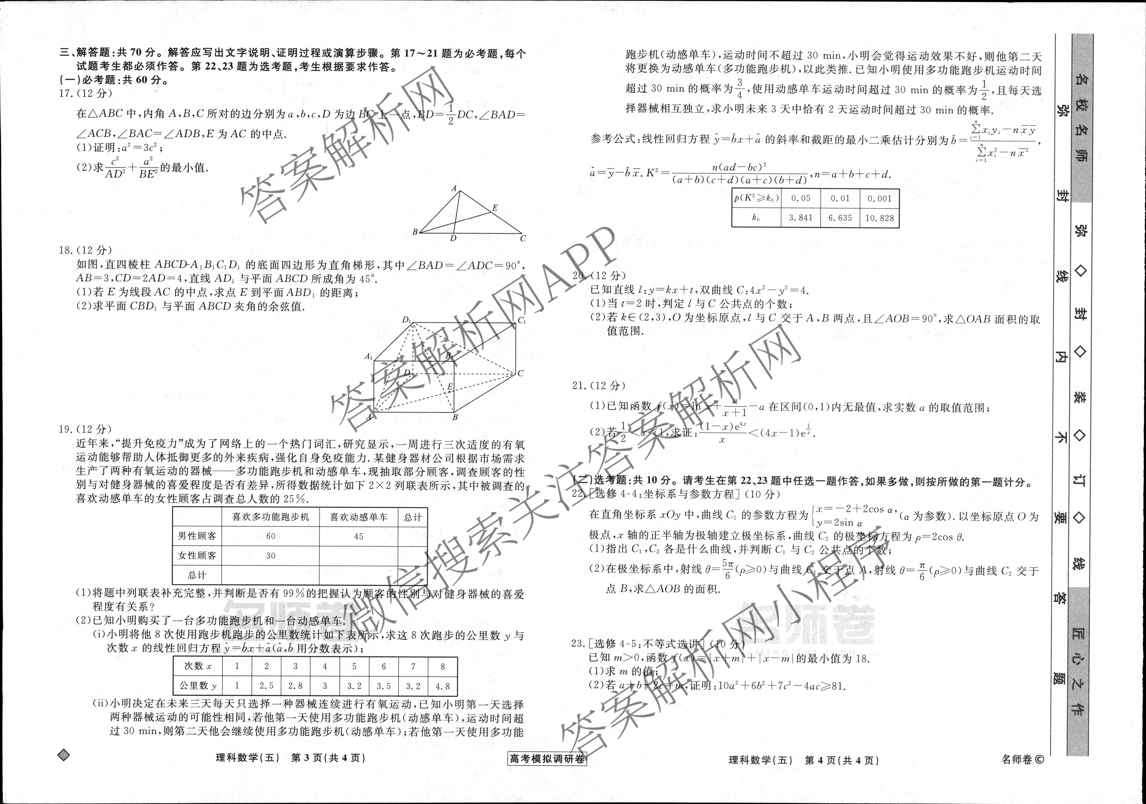- 高三[衡水名师卷]·高考模拟调研卷 2024年普通高等学校招生全国统一考试模拟试题 理数(实心◇)(五)5答案