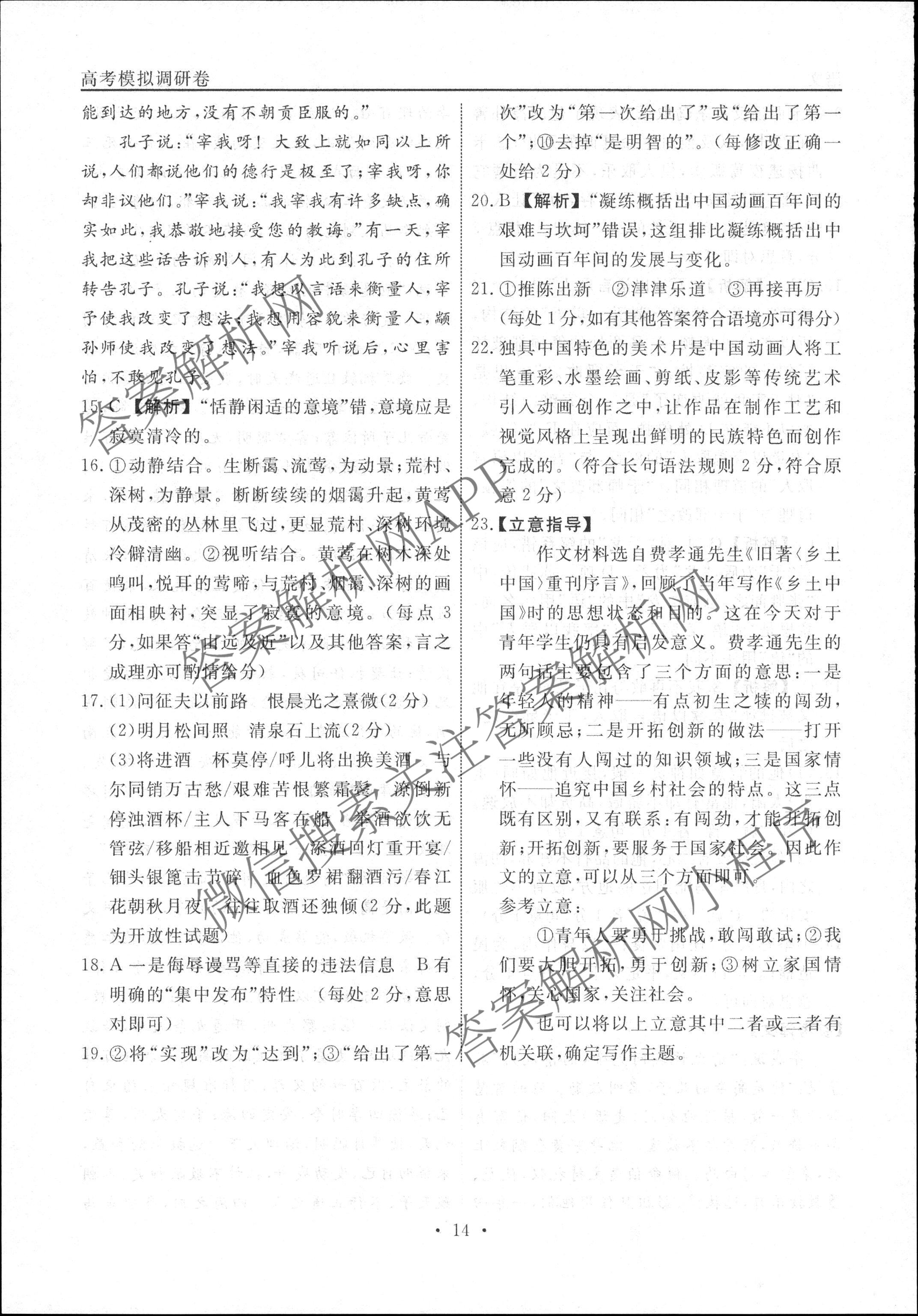 - [高三](衡水名师卷)·高考模拟调研卷2024年普通高等学校招生全国统一考试模拟试题 语文(实心◇)(五)5答案