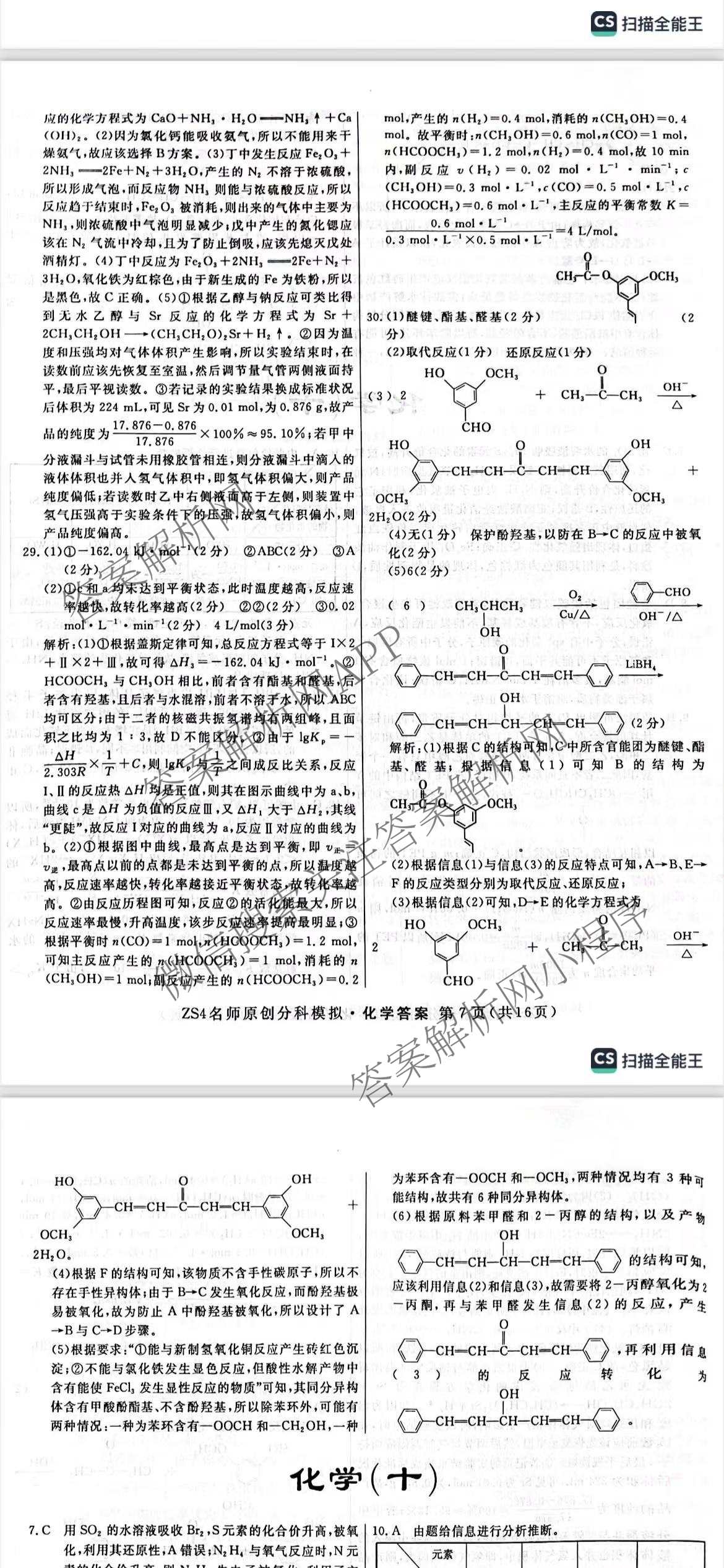 2024届高三总复习名师原创分科模拟(九)9化学(ZS4)答案