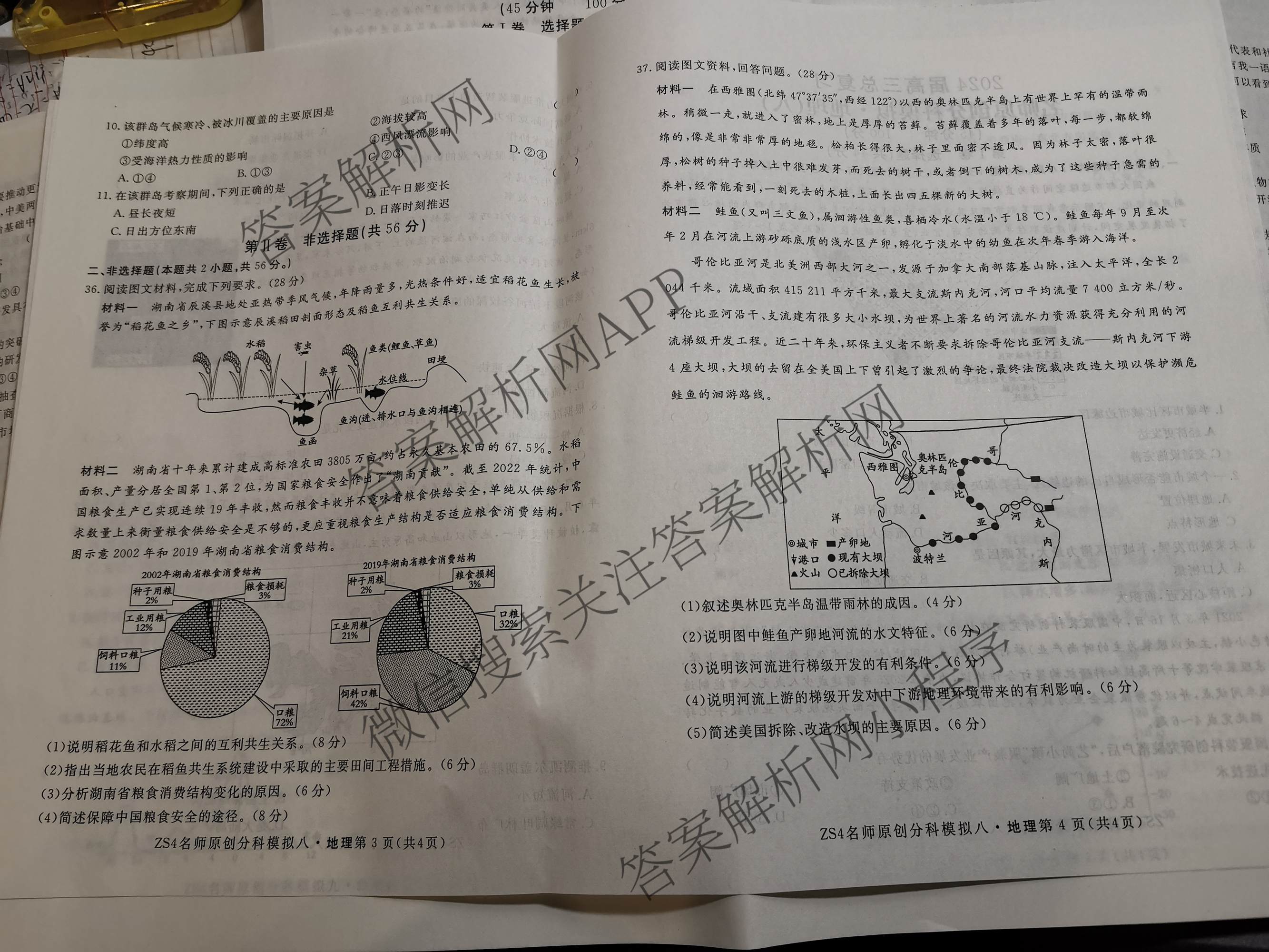 - [高三]2024届总复习·名师原创分科模拟 地理(ZS4)(八)8答案