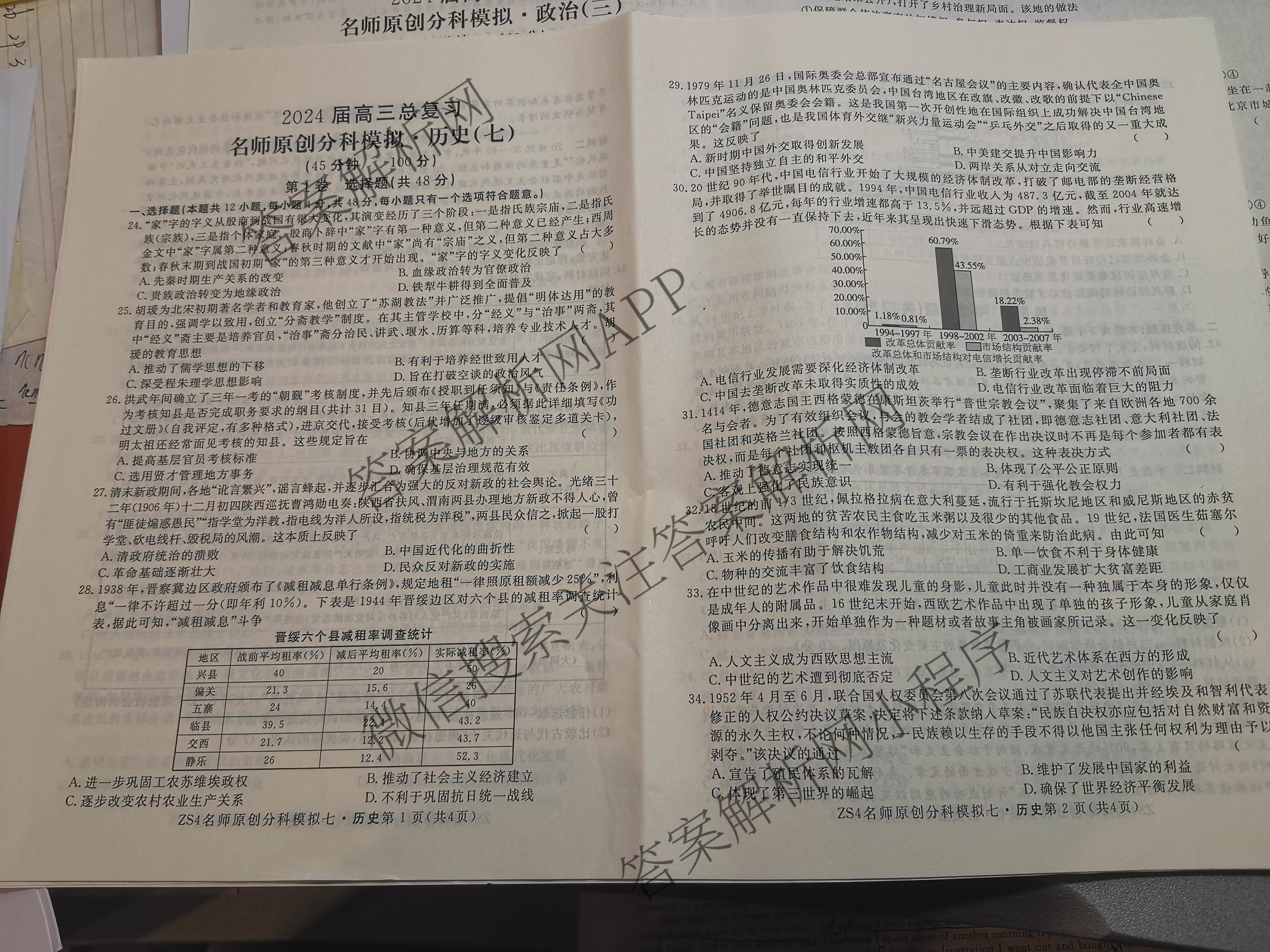 - 2024届[高三]总复习·名师原创分科模拟 历史(ZS4)(七)7答案