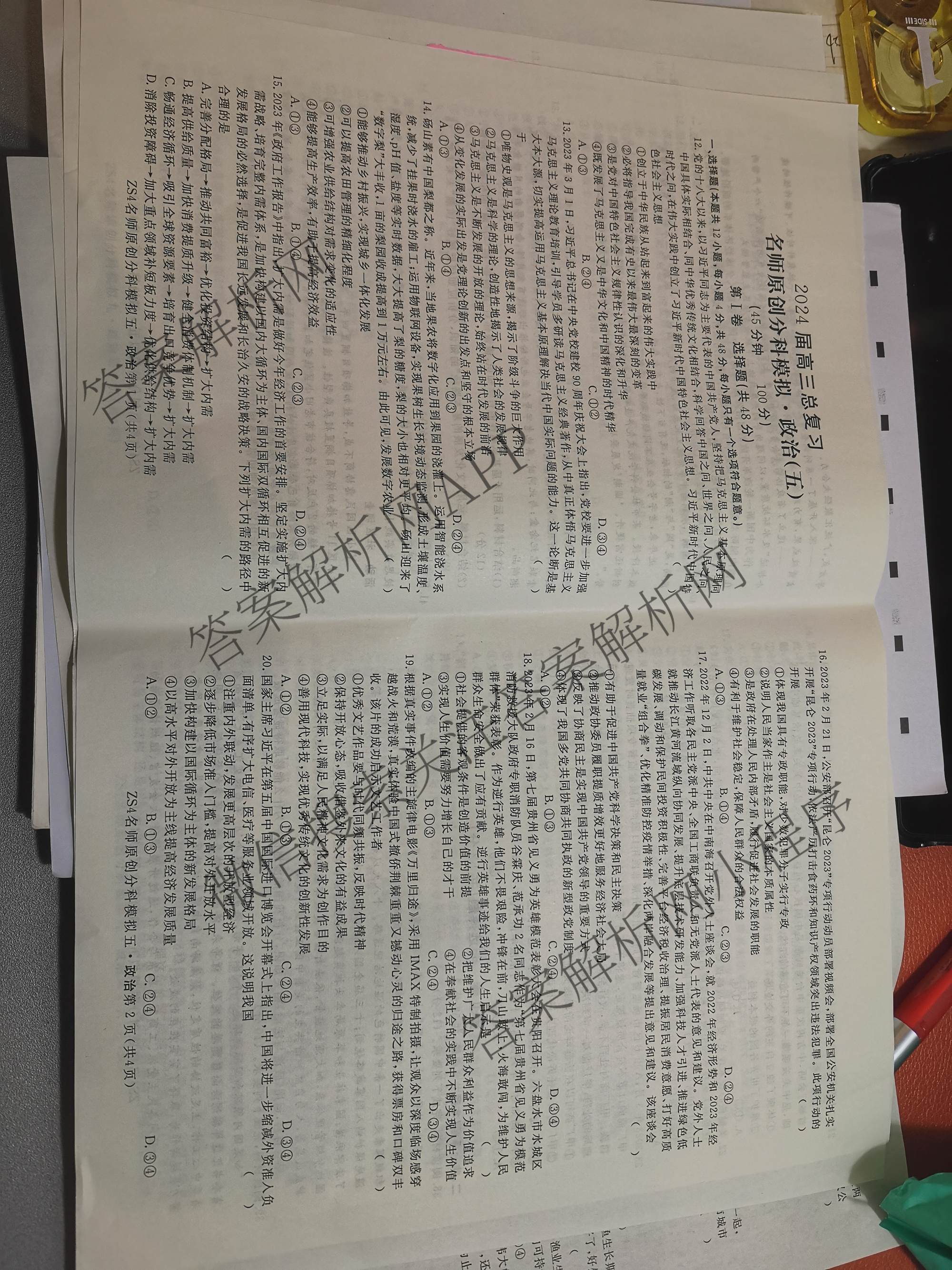 2024届高三总复习·名师原创分科模拟 政治(ZS4)(五)5试题,目前分科卷答案网已经汇总了2024届高三总复习·名师原创分科模拟 政治(ZS4)(五)5试题的各科答案和试卷,获取更多高三总复习·名师原创模拟答案解析,请在关注本站。