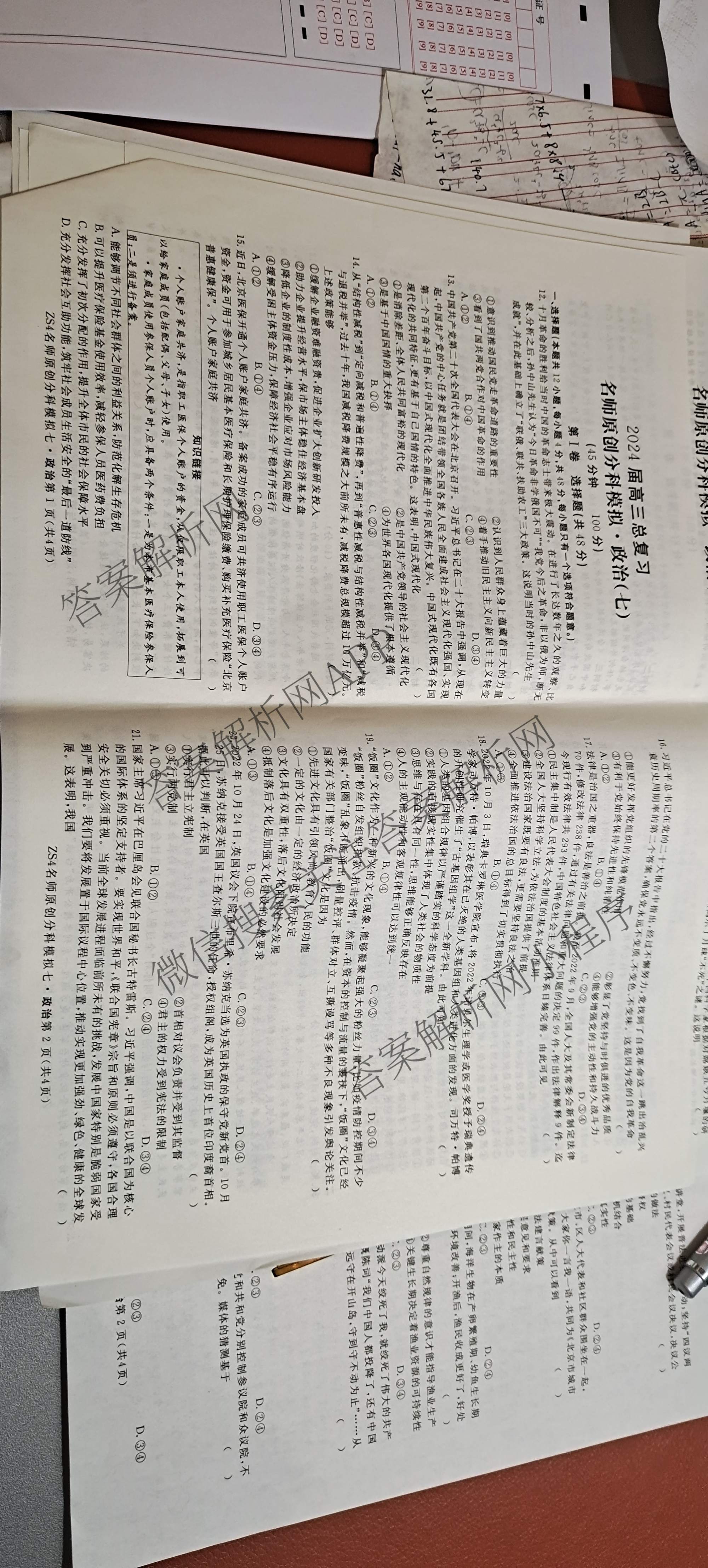 2024届高三总复习·名师原创分科模拟 政治(ZS4)(七)7试题,目前分科卷答案网已经汇总了2024届高三总复习·名师原创分科模拟 政治(ZS4)(七)7试题的各科答案和试卷,获取更多高三总复习·名师原创模拟答案解析,请在关注本站。