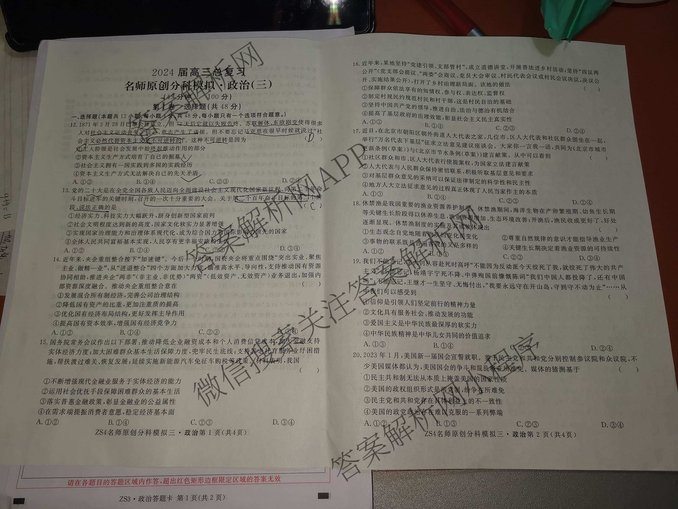 2024届高三总复习·名师原创分科模拟 政治(ZS4)(三)3试题,目前分科卷答案网已经汇总了2024届高三总复习·名师原创分科模拟 政治(ZS4)(三)3试题的各科答案和试卷,获取更多高三总复习·名师原创模拟答案解析,请在关注本站。