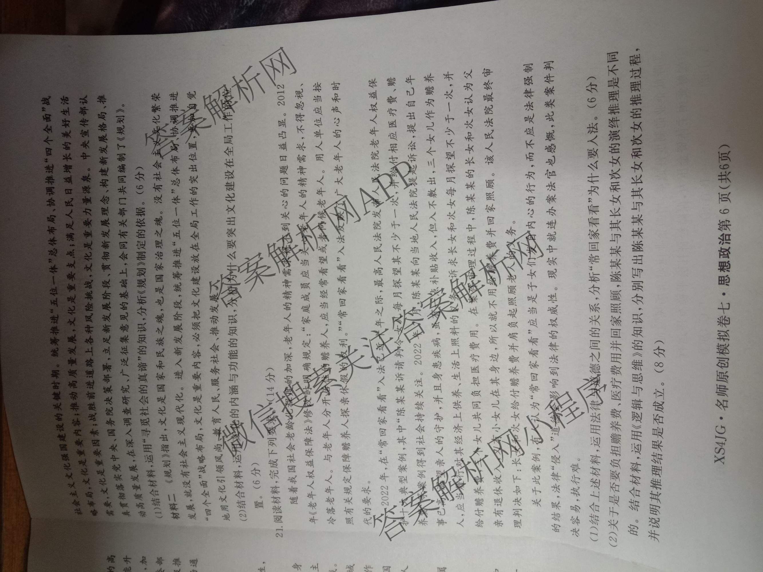 - 2024届[高三]总复习·名师原创分科模拟 政治(XS4JG)(七)7答案