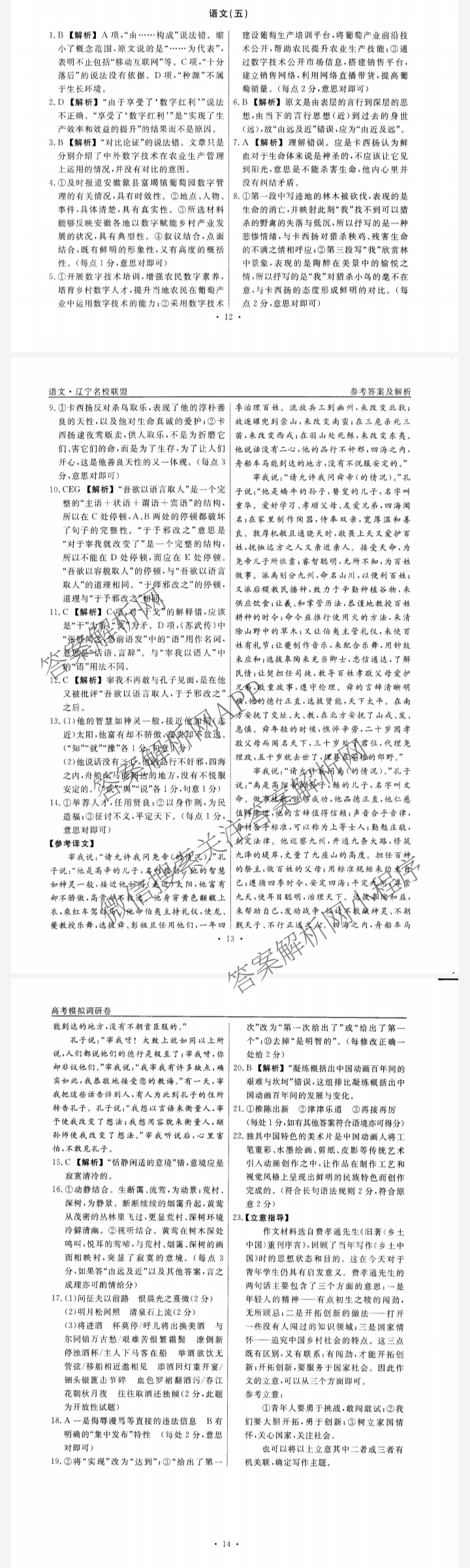 辽宁省名校联盟2024年高考模拟卷(调研卷)(五)5语文答案,目前分科卷答案网已经汇总了辽宁省名校联盟2024年高考模拟卷(调研卷)(五)5语文答案的各科答案和试卷,获取更多衡水名师卷答案解析,请在关注本站。