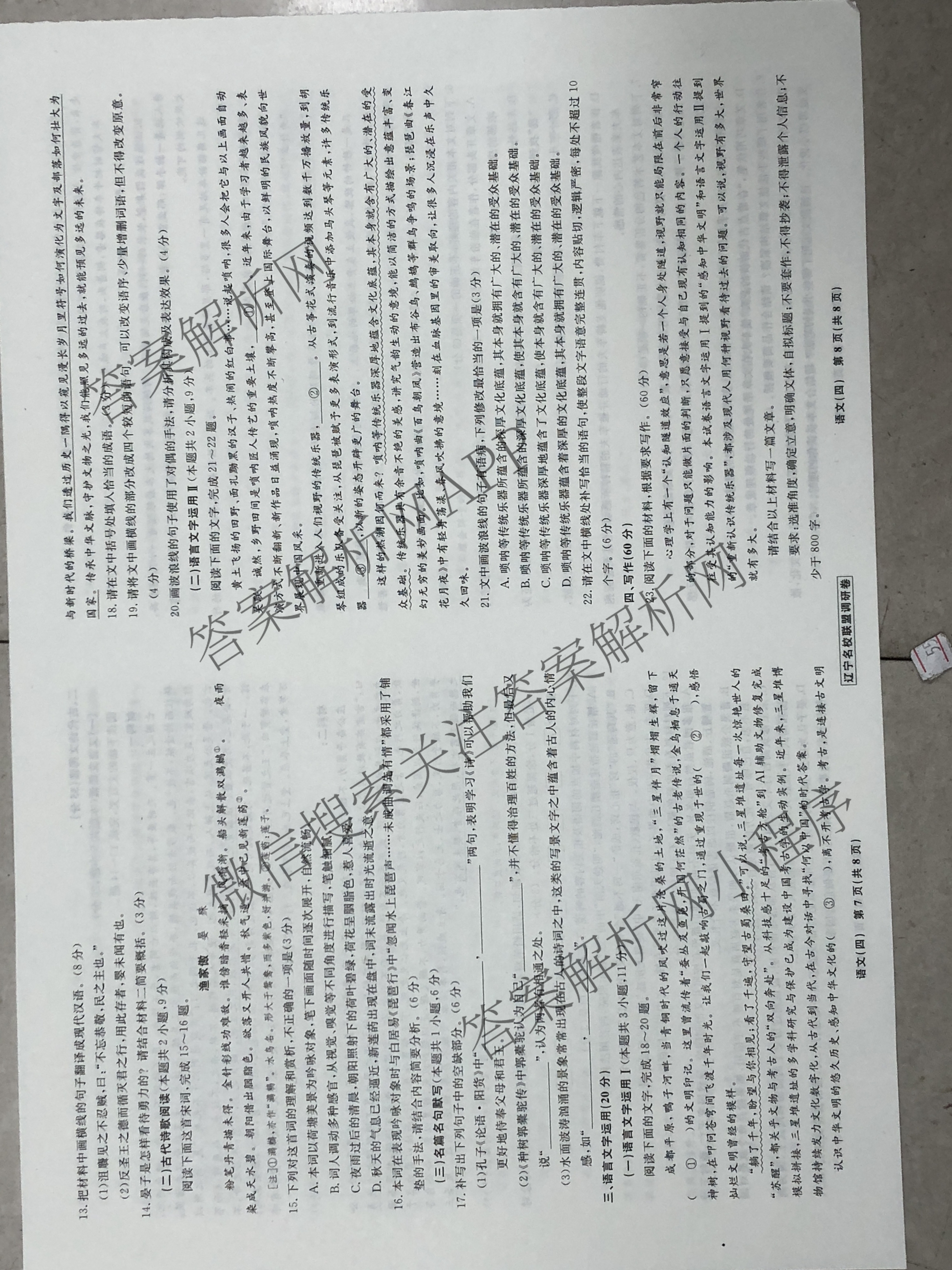 辽宁省名校联盟2024年高考模拟卷(调研卷)(四)4语文试题,目前分科卷答案网已经汇总了辽宁省名校联盟2024年高考模拟卷(调研卷)(四)4语文试题的各科答案和试卷,获取更多衡水名师卷答案解析,请在关注本站。