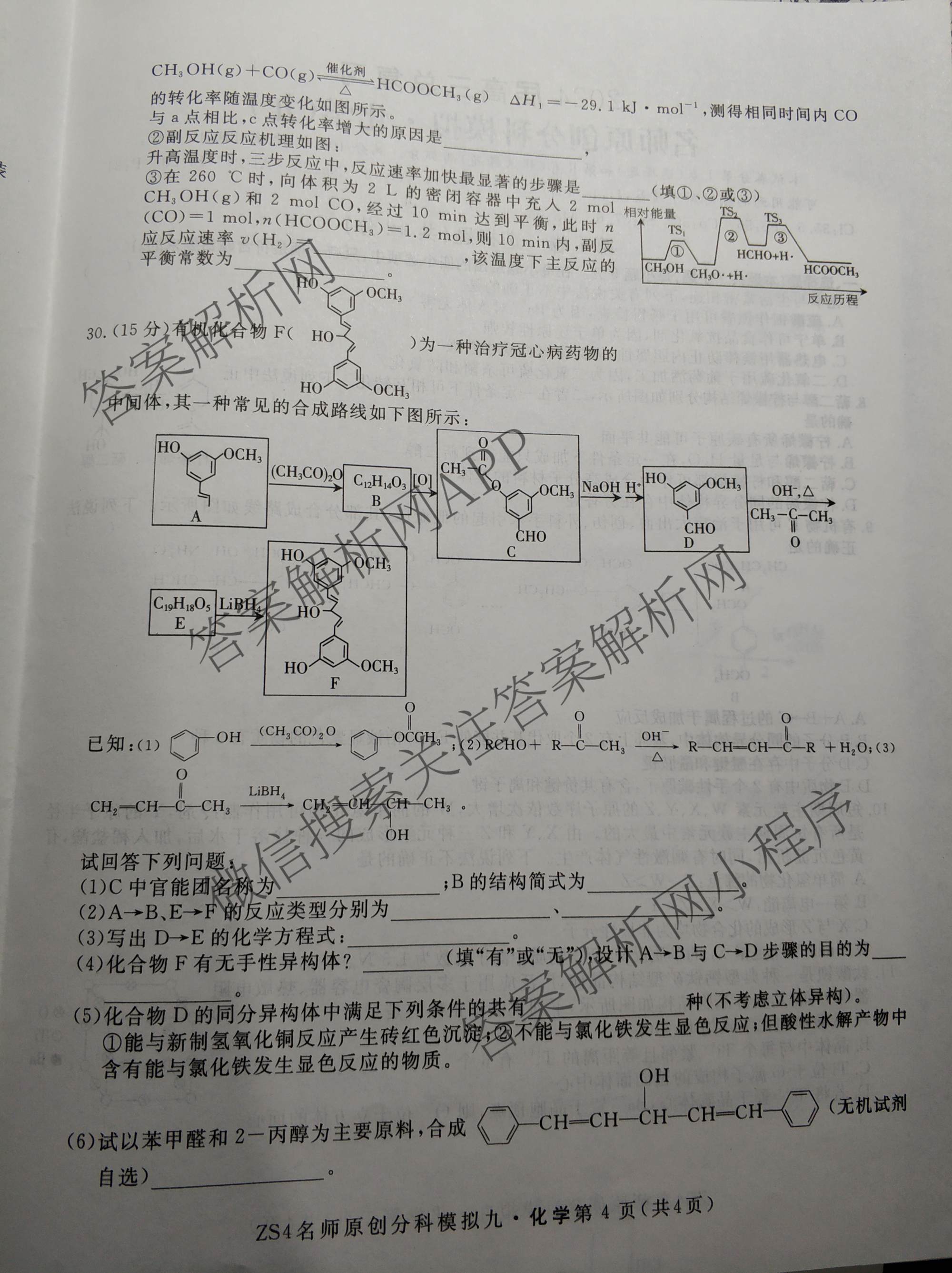 2024届高三总复习·名师原创分科模拟(九)9化学(ZS4)试题,目前分科卷答案网已经汇总了2024届高三总复习·名师原创分科模拟(九)9化学(ZS4)试题的各科答案和试卷,获取更多高三总复习·名师原创模拟答案解析,请在关注本站。