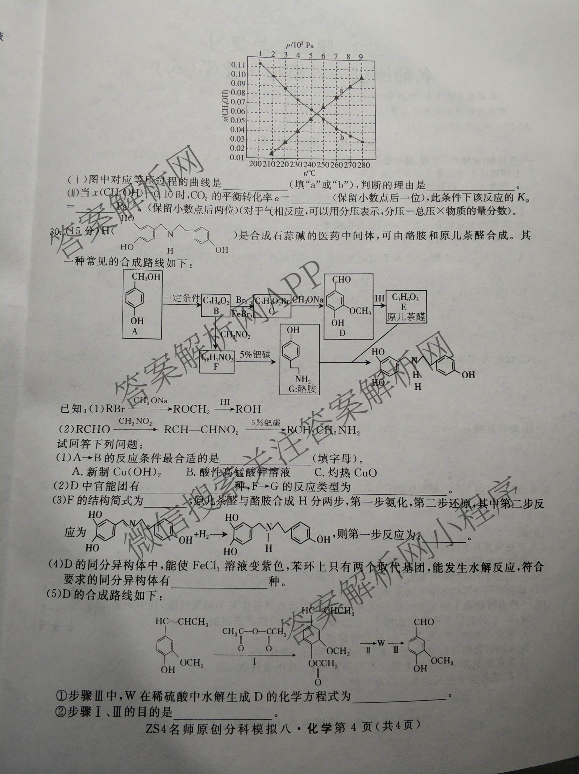 2024届高三总复习·名师原创分科模拟 化学(ZS4)(八)8试题,目前分科卷答案网已经汇总了2024届高三总复习·名师原创分科模拟 化学(ZS4)(八)8试题的各科答案和试卷,获取更多高三总复习·名师原创模拟答案解析,请在关注本站。
