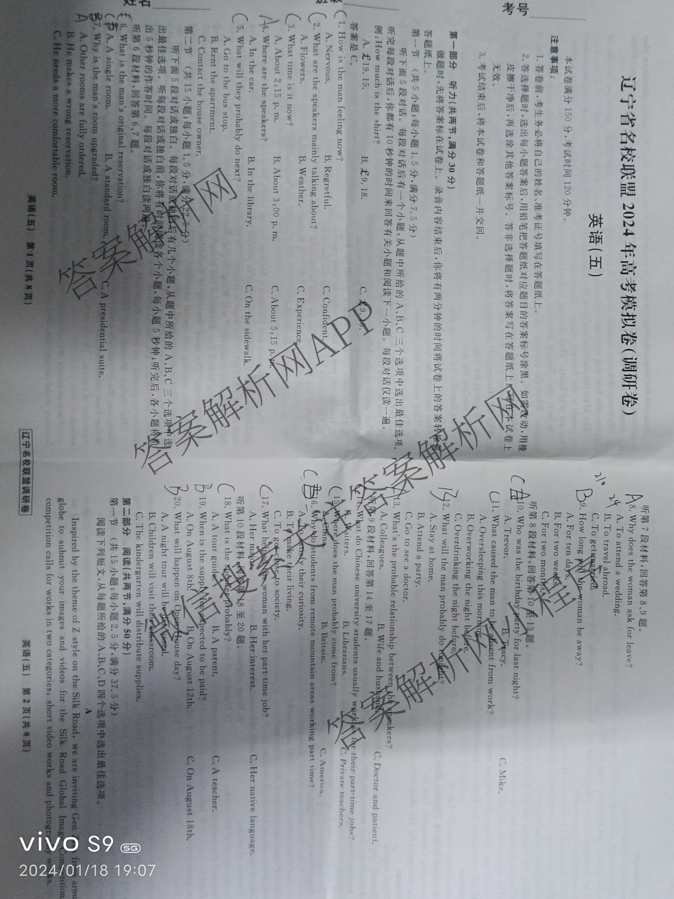 辽宁省名校联盟2024年高考模拟卷(调研卷)(五)5英语试题,目前分科卷答案网已经汇总了辽宁省名校联盟2024年高考模拟卷(调研卷)(五)5英语试题的各科答案和试卷,获取更多衡水名师卷答案解析,请在关注本站。