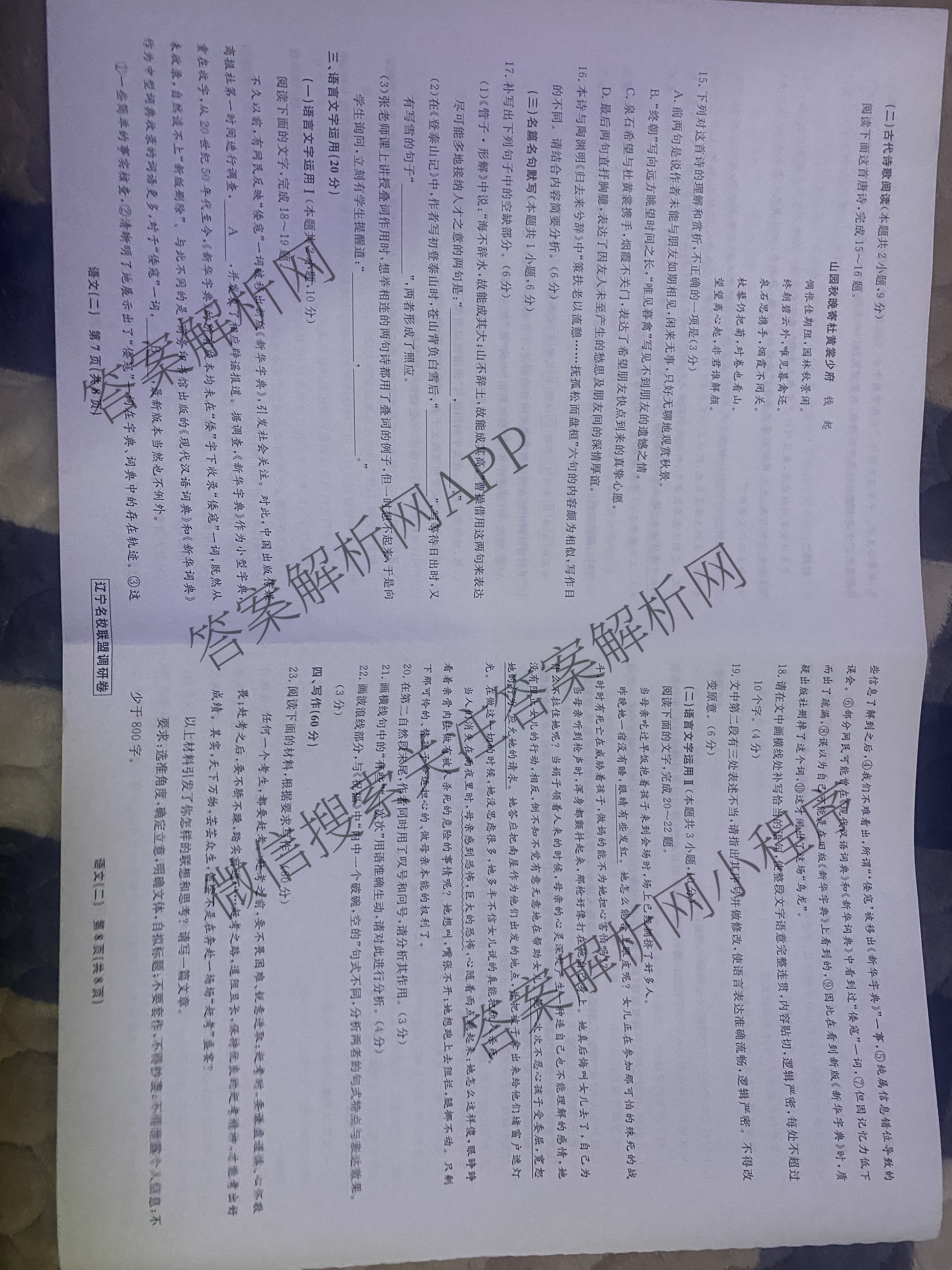 辽宁省名校联盟2024年高考模拟卷(调研卷)(二)2语文试题,目前分科卷答案网已经汇总了辽宁省名校联盟2024年高考模拟卷(调研卷)(二)2语文试题的各科答案和试卷,获取更多衡水名师卷答案解析,请在关注本站。