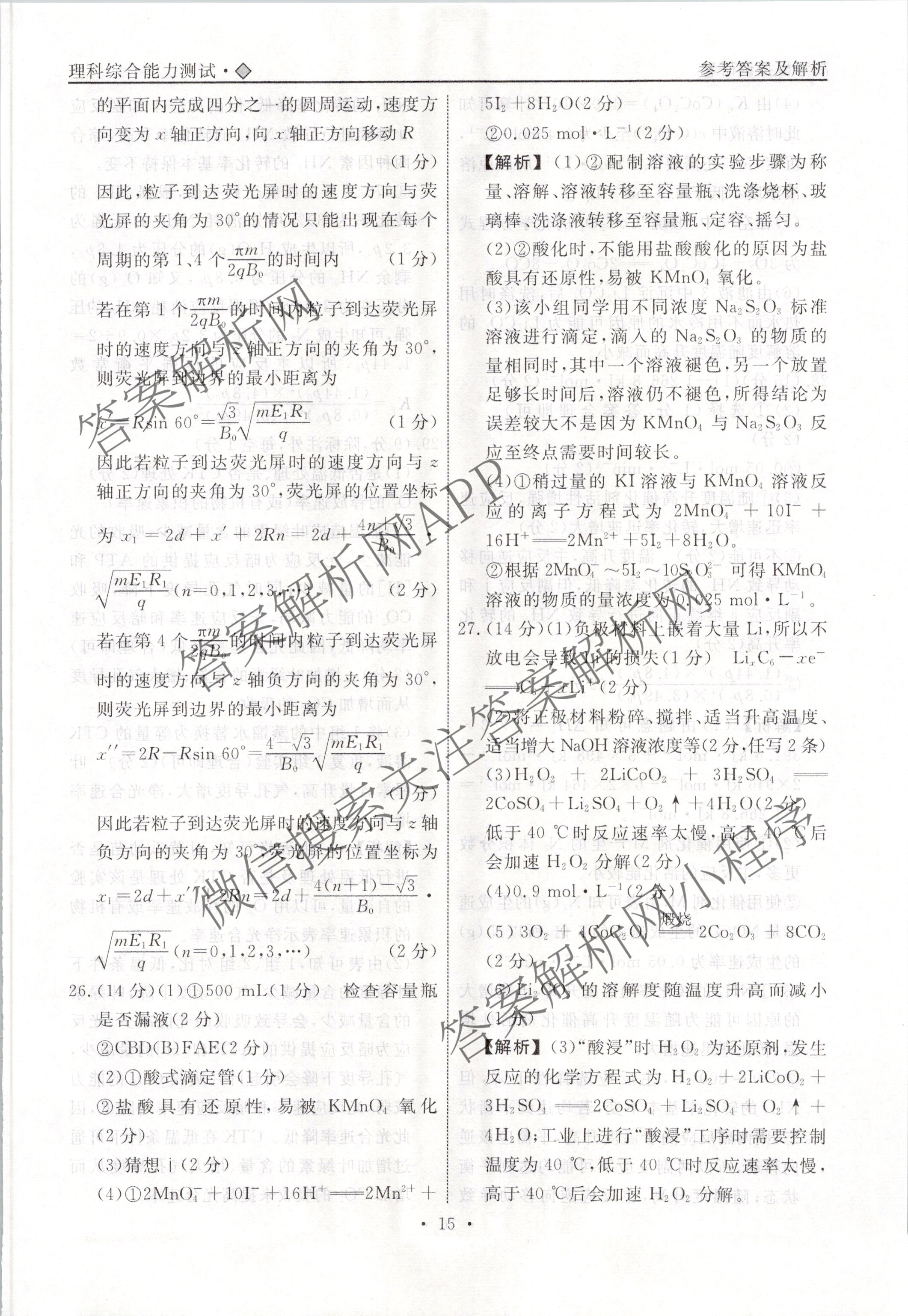 [高三](衡水名师卷)高考模拟调研卷 2024年普通高等学校招生全国统一考试模拟试题 理综(实心◇)(二)2答案