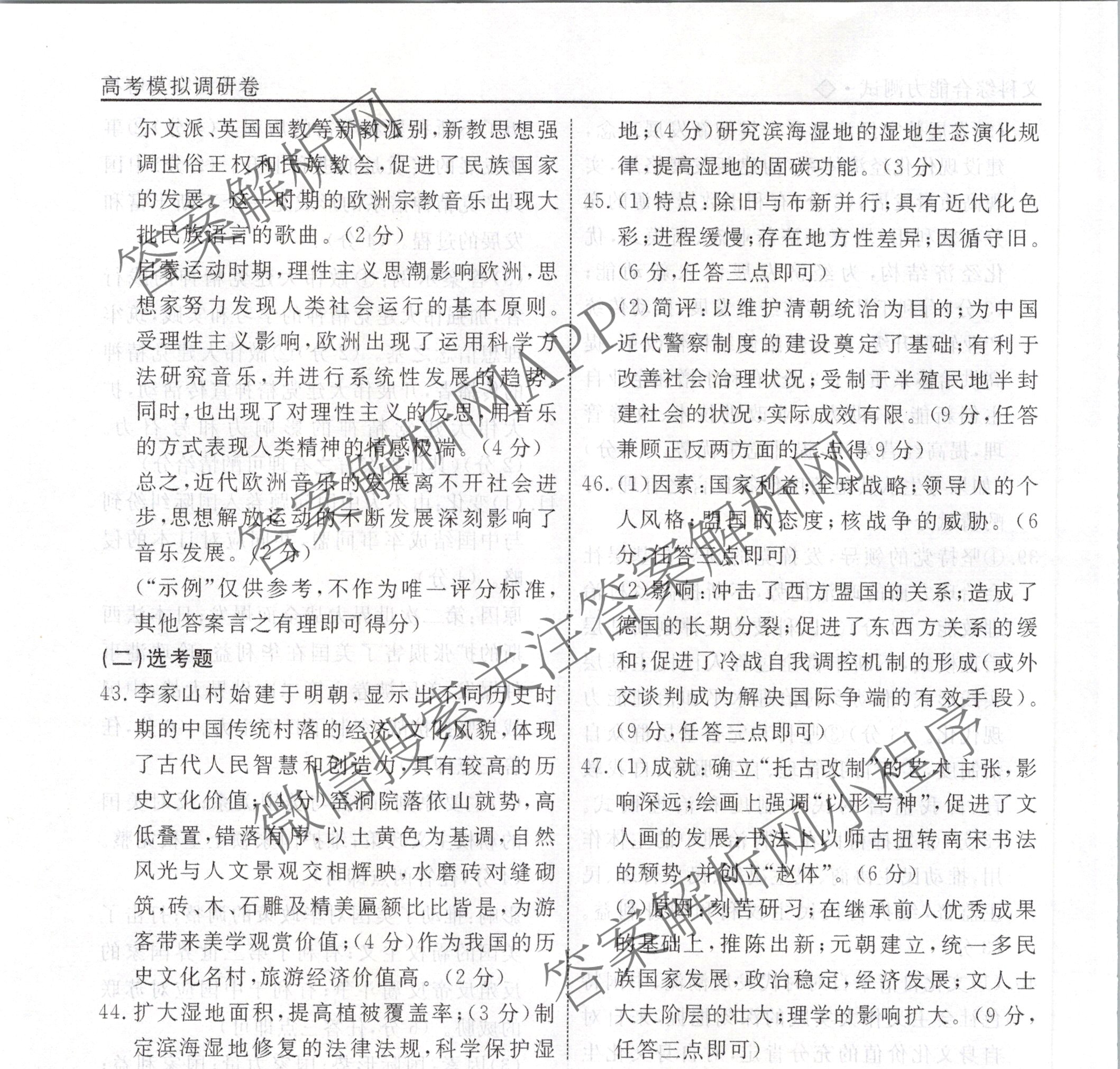 - (高三)衡水名师卷·高考模拟调研卷 2024年普通高等学校招生全国统一考试模拟试题 文综(空心◇)(二)2答案