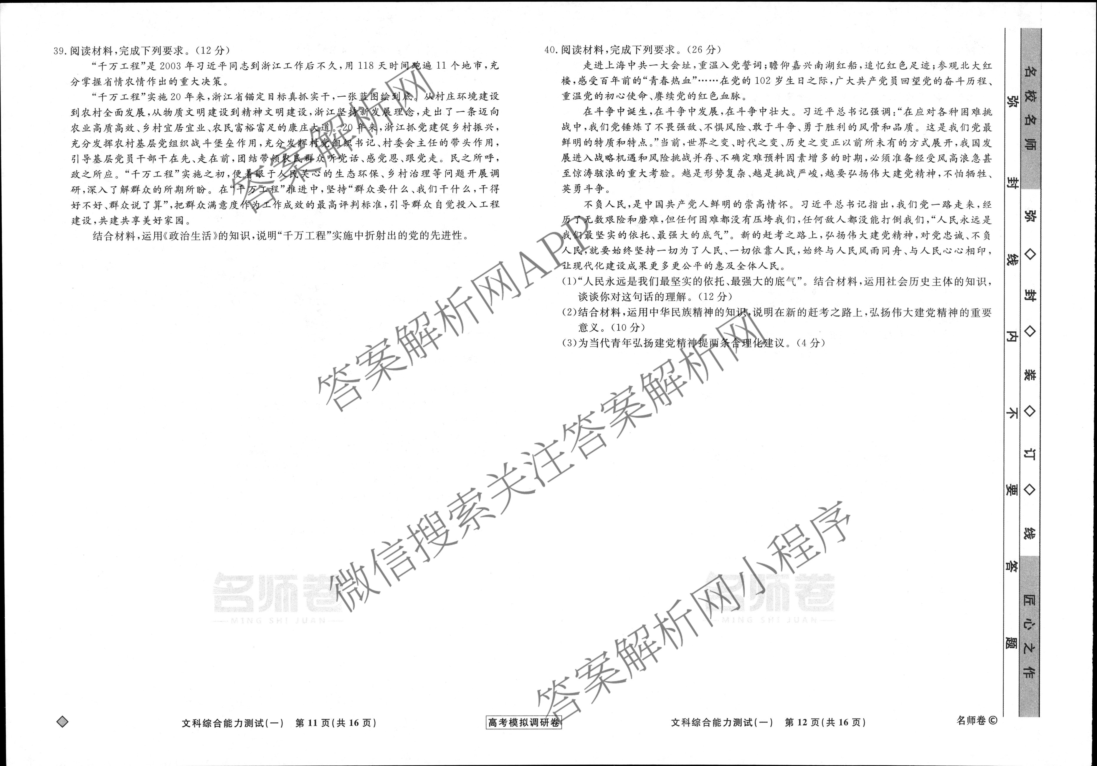 - (高三)(衡水名师卷)·高考模拟调研卷 2024年普通高等学校招生全国统一考试模拟试题 文综(实心◇)(一)1试题