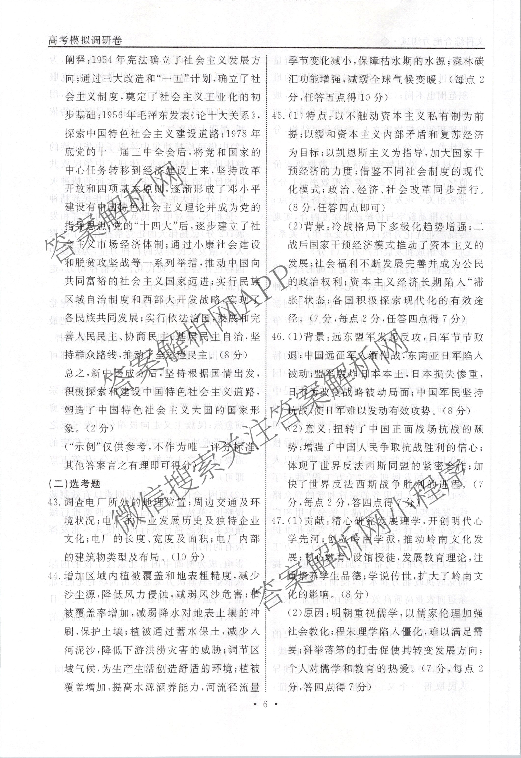 [衡水名师卷]高考模拟调研卷 2024年普通高等学校招生全国统一考试模拟试题 文综(实心◇)(一)1答案