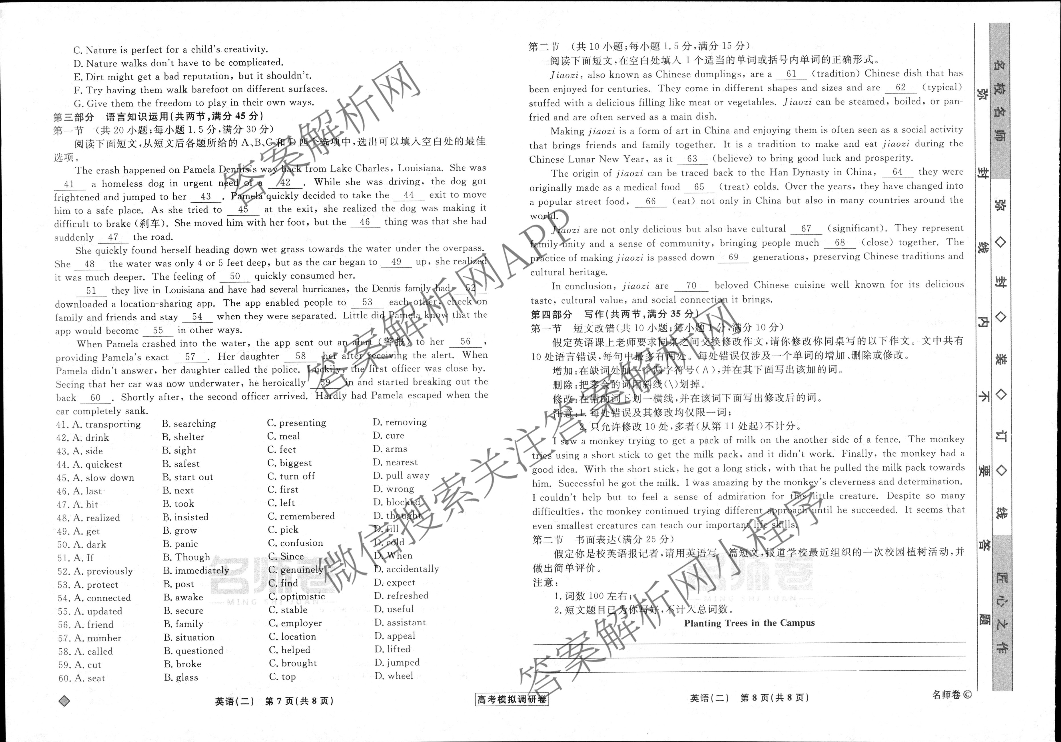 [衡水名师卷]·高考模拟调研卷 2024年普通高等学校招生全国统一考试模拟试题 英语(实心◇)(二)2试题