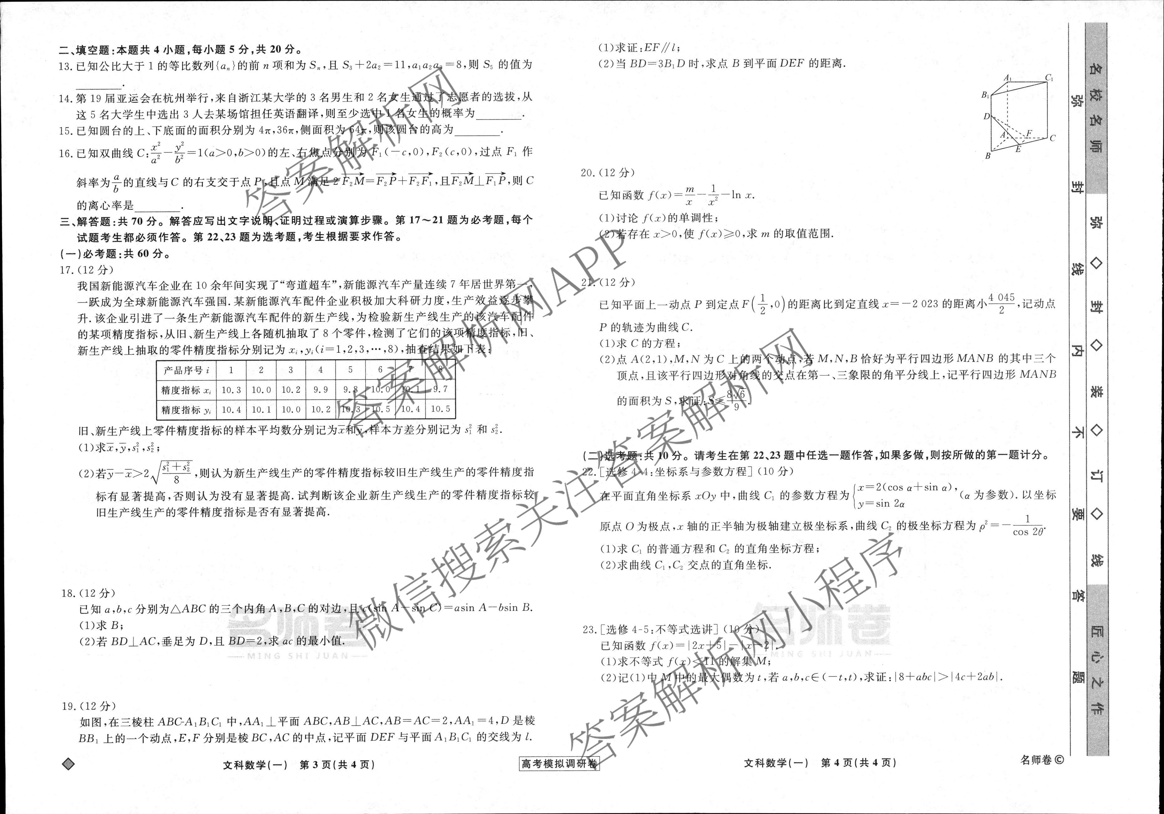 - 衡水名师卷高考模拟调研卷 2024年普通高等学校招生全国统一考试模拟试题 文数(实心◇)(一)1答案