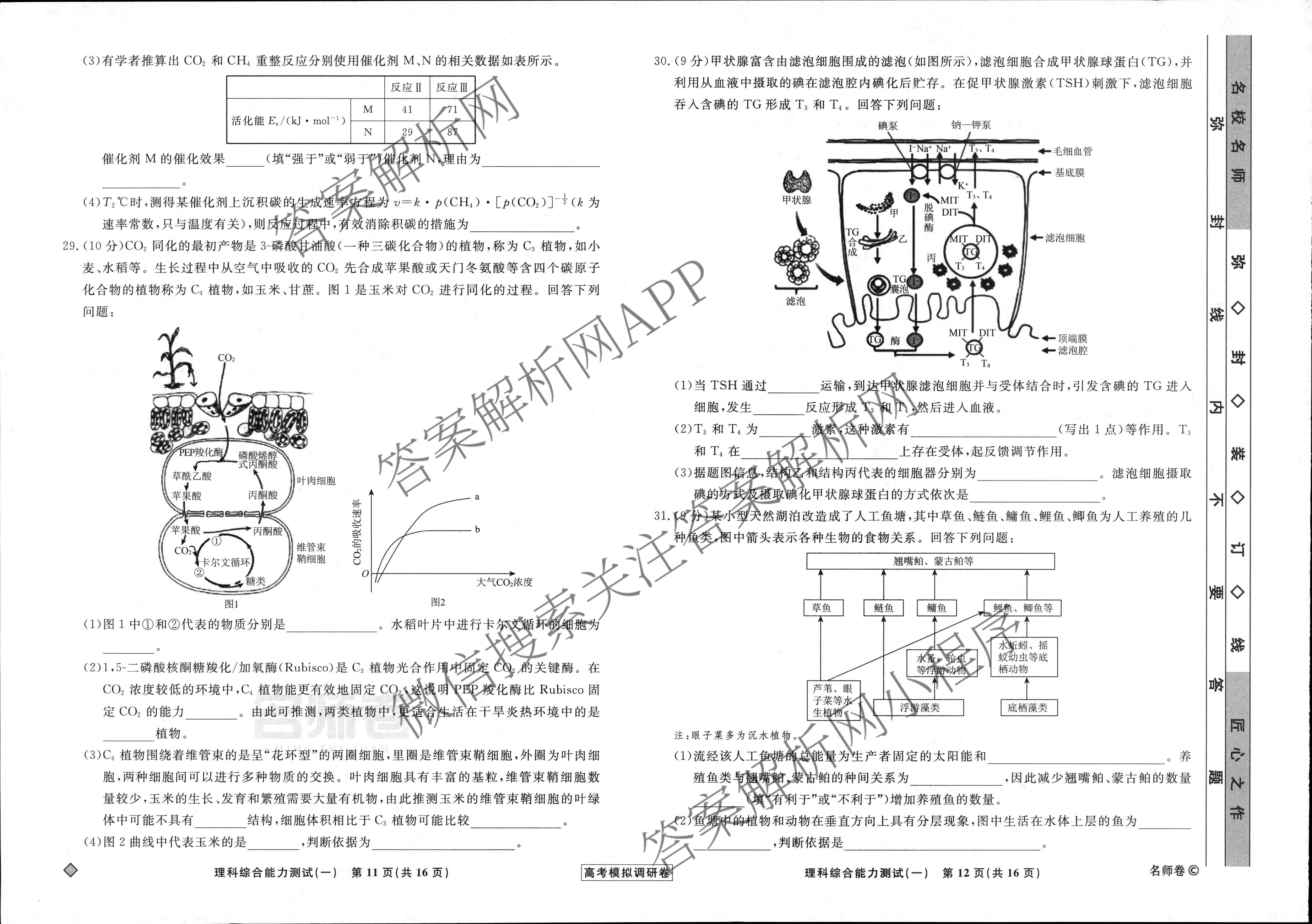 - (衡水名师卷)·高考模拟调研卷 2024年普通高等学校招生全国统一考试模拟试题 理综(实心◇)(一)1答案