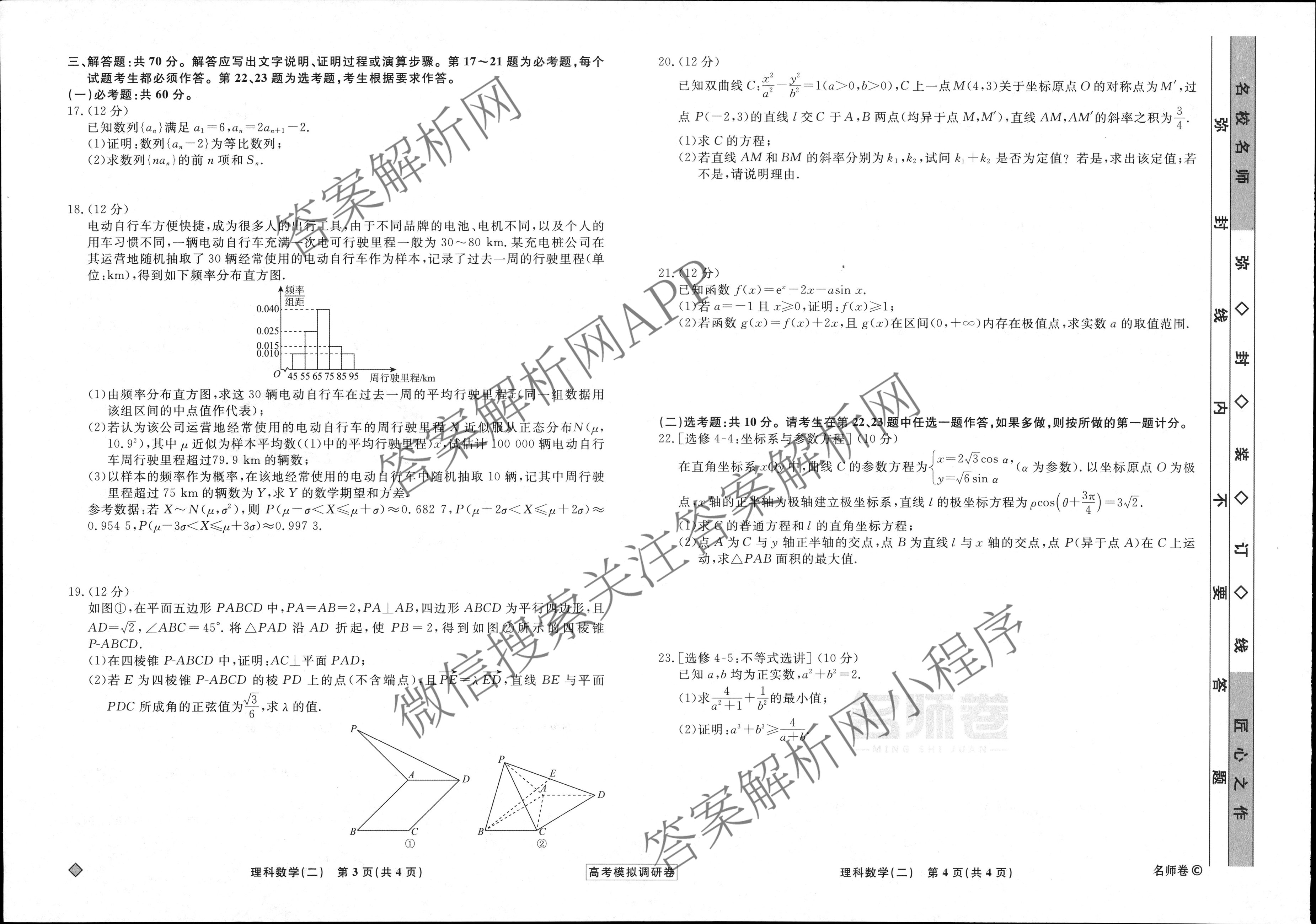 - (高三)[衡水名师卷]·高考模拟调研卷 2024年普通高等学校招生全国统一考试模拟试题 理数(实心◇)(二)2答案