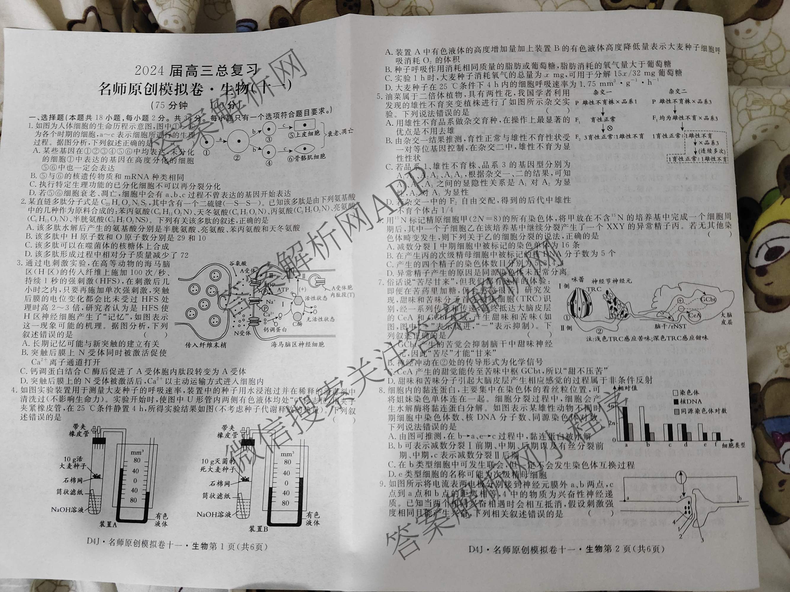 2024届高三总复习名师原创模拟卷 生物(D4J)(十一)11试题