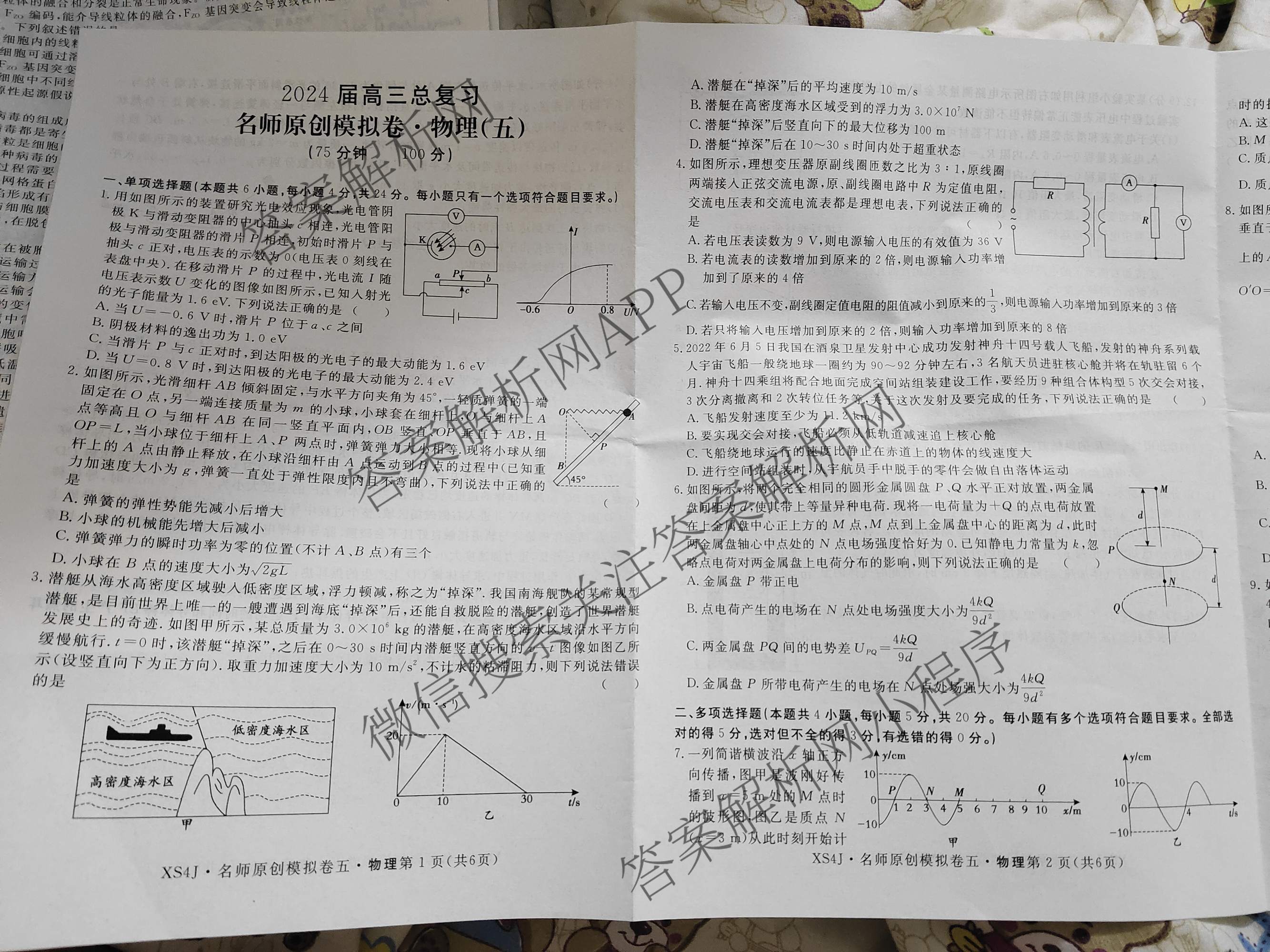 - (高三)2024届总复习·名师原创分科模拟 物理(S4)(五)5答案
