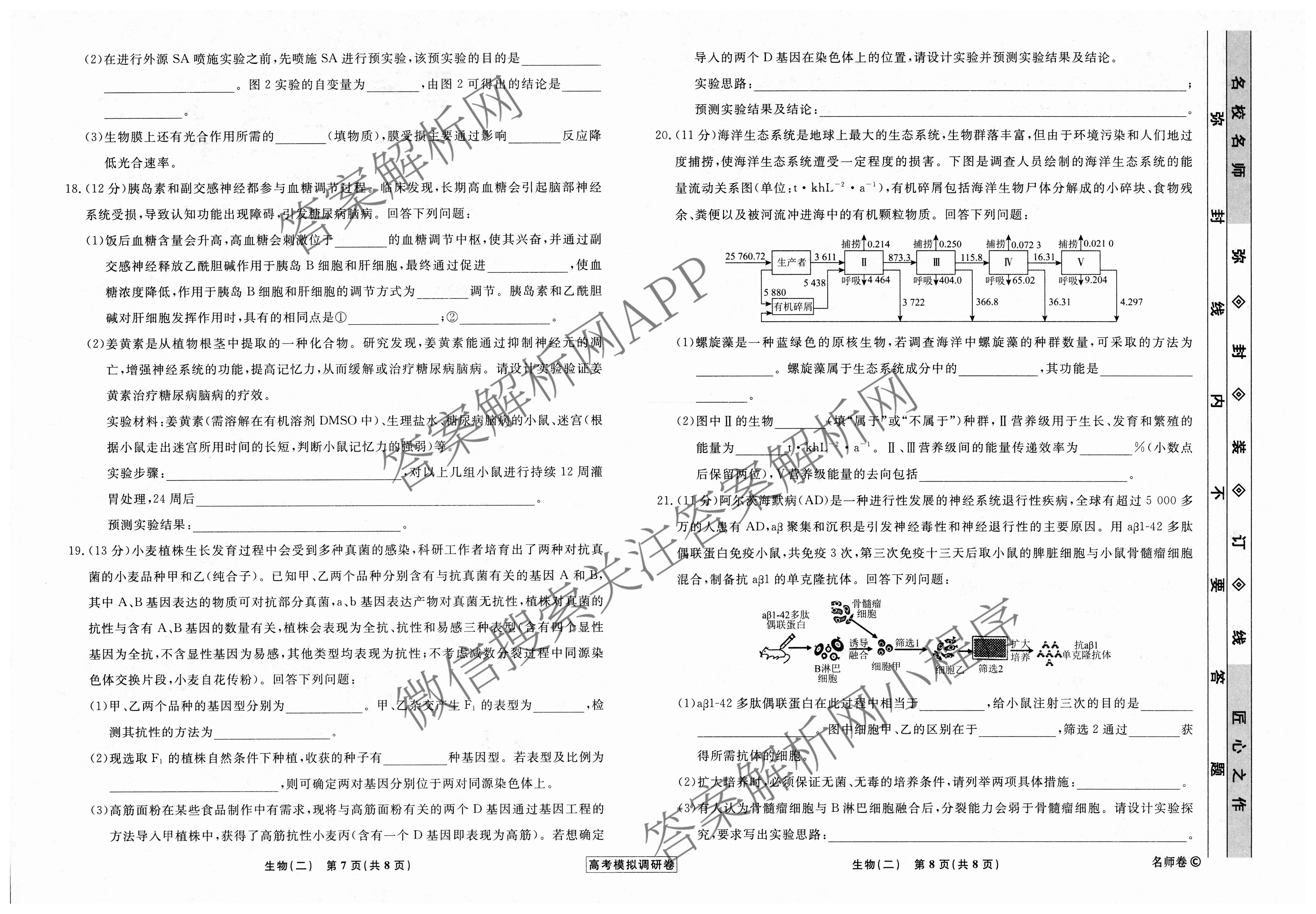 衡水名师卷·高考模拟调研卷 2024年普通高中学业水平选择性考试模拟试题 生物(双菱形)(二)2试题,目前分科卷答案网已经汇总了衡水名师卷·高考模拟调研卷 2024年普通高中学业水平选择性考试模拟试题 生物(双菱形)(二)2试题的各科答案和试卷,获取更多衡水名师卷答案解析,请在关注本站。
