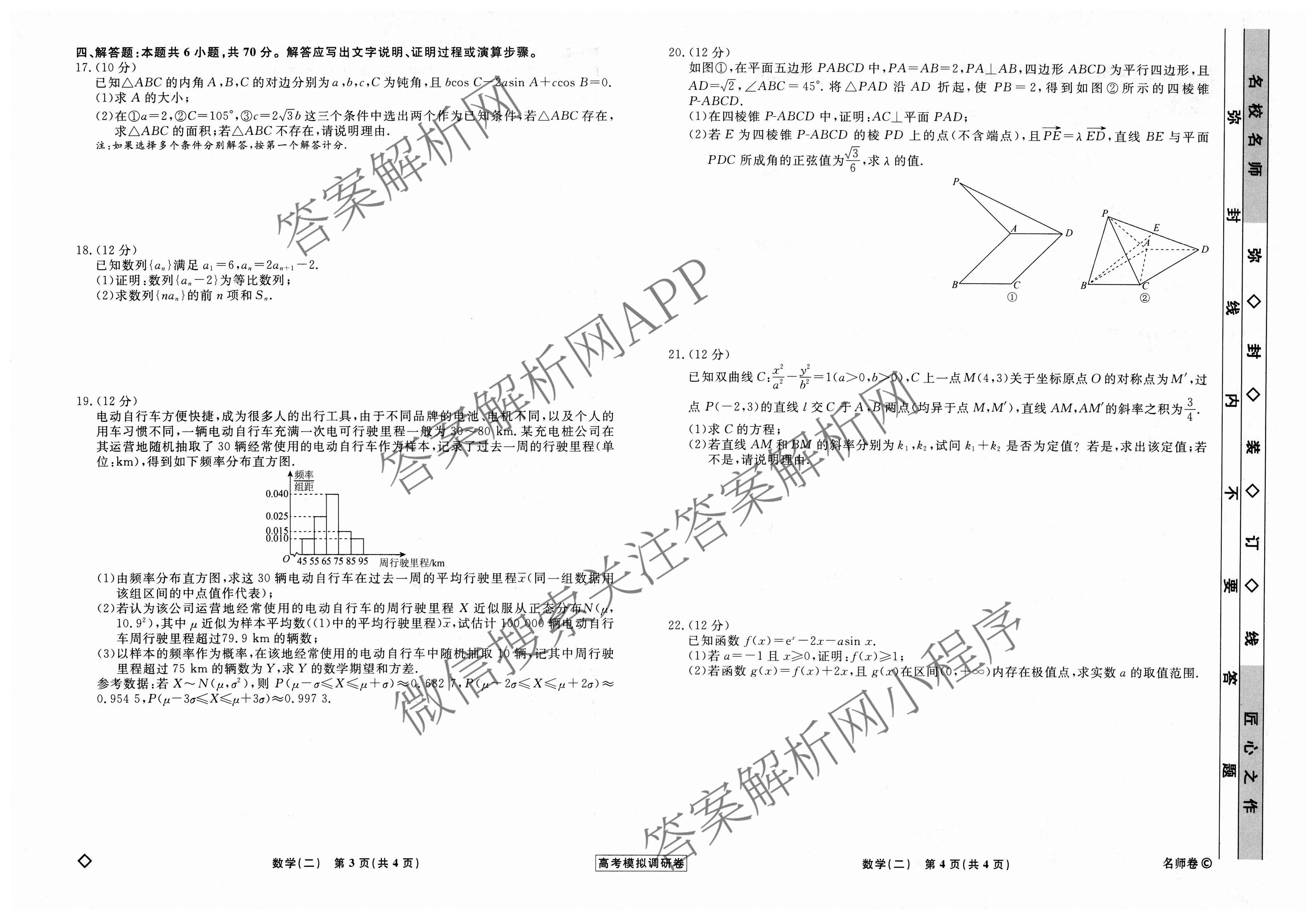- (高三)[衡水名师卷]·高考模拟调研卷 2024年普通高等学校招生全国统一考试模拟试题 理数(实心◇)(二)2答案