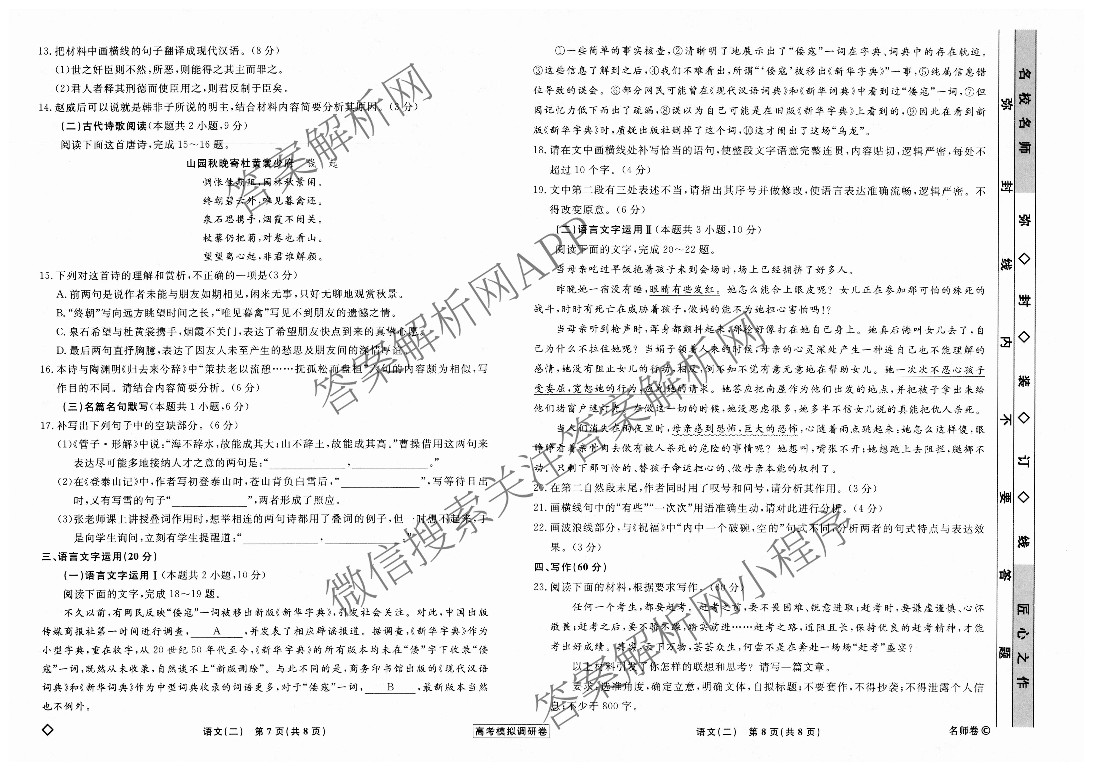 衡水名师卷·高考模拟调研卷2024年普通高等学校招生全国统一考试模拟试题 语文(空心◇)(二)2试题,目前分科卷答案网已经汇总了衡水名师卷·高考模拟调研卷2024年普通高等学校招生全国统一考试模拟试题 语文(空心◇)(二)2试题的各科答案和试卷,获取更多衡水名师卷答案解析,请在关注本站。