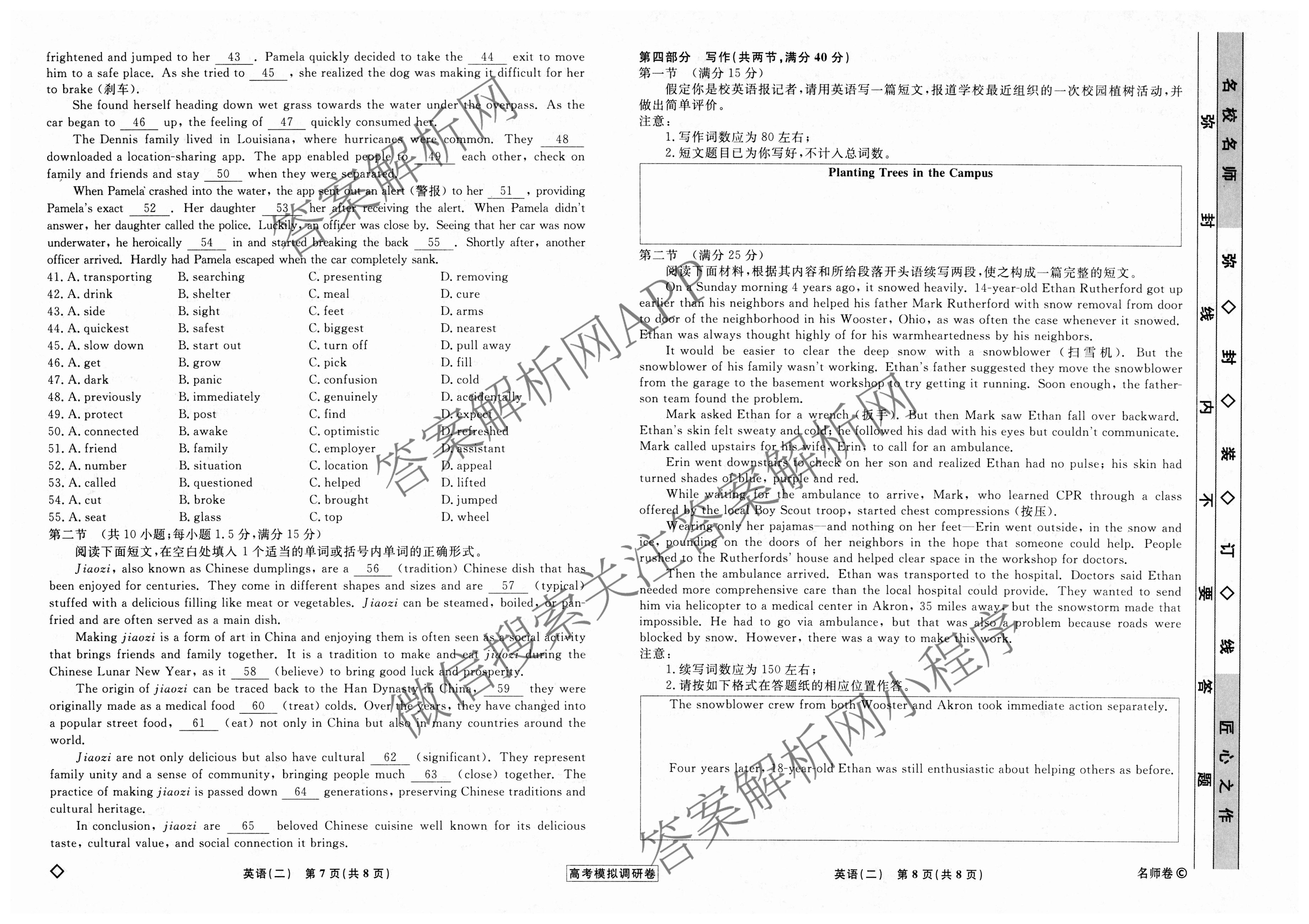[高三](衡水名师卷)高考模拟调研卷 2024年普通高等学校招生全国统一考试模拟试题 英语(空心◇)(二)2试题