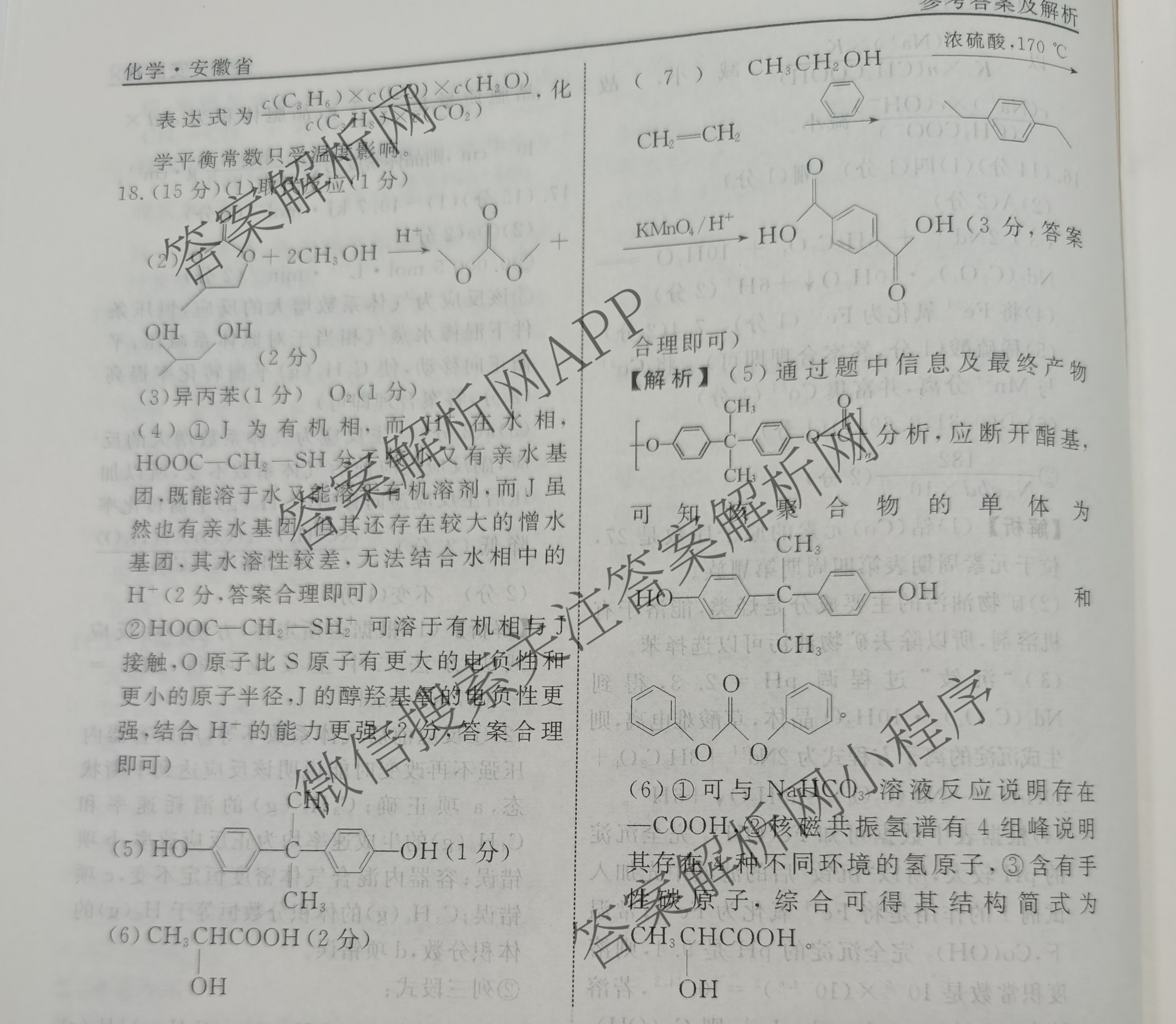 - (高三)[衡水名师卷]高考模拟检测卷 安徽省2024年普通高等学校招生全国统一考试模拟试题 化学(一)1答案