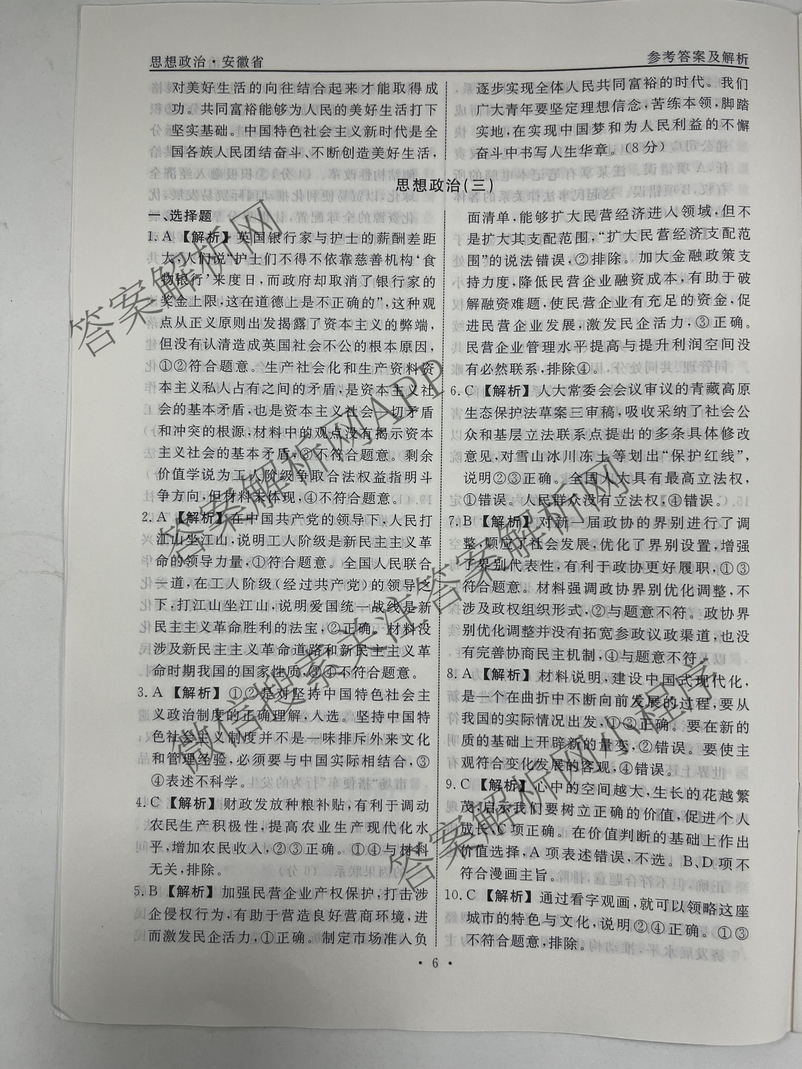 衡水名师卷高考模拟检测卷 安徽省2024年普通高等学校招生全国统一考试模拟试题 政治(二)2答案