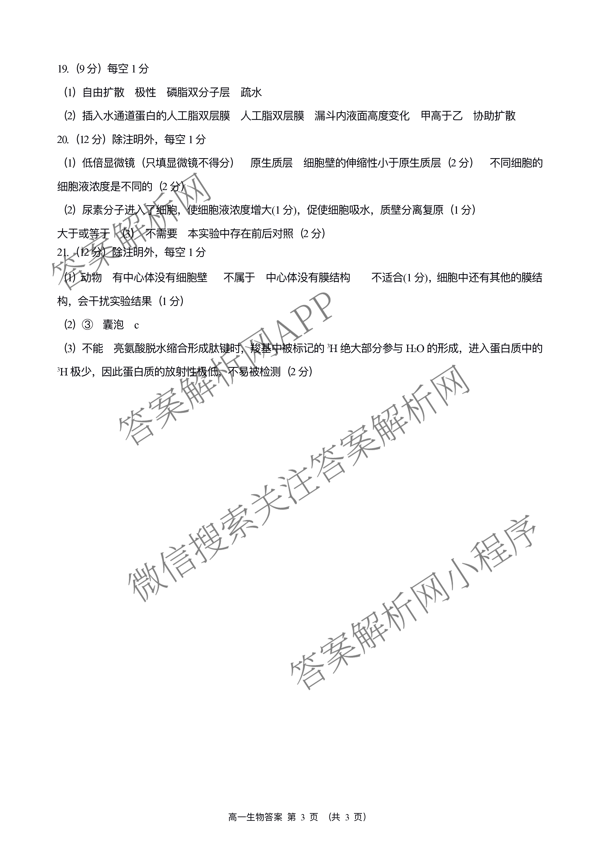 高一2023年[江南十校]分科诊断摸底联考生物答案