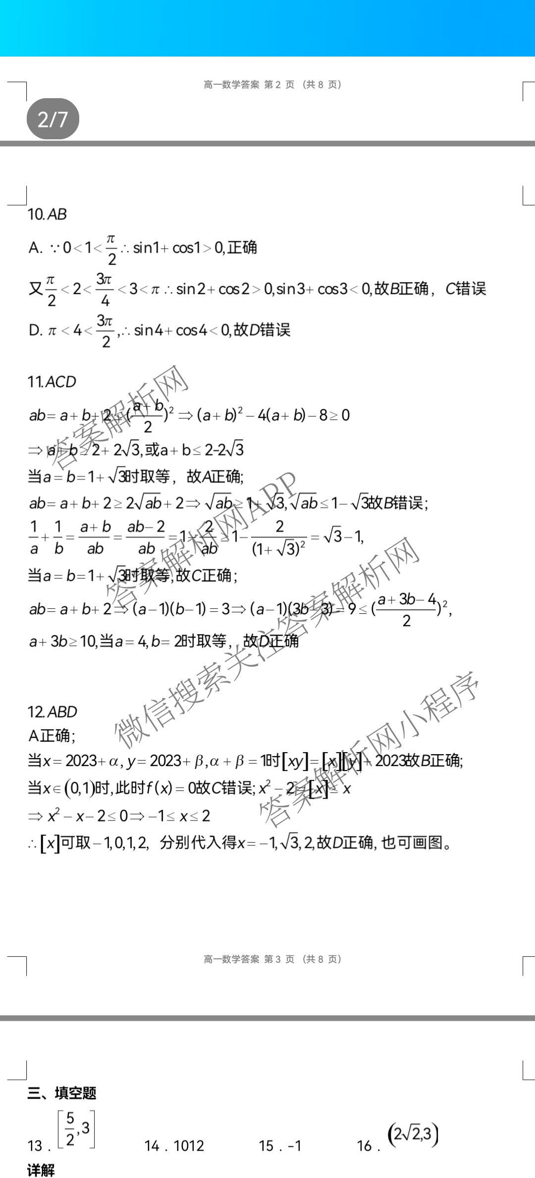 - 2023年(江南十校)[高一]分科诊断摸底联考数学答案