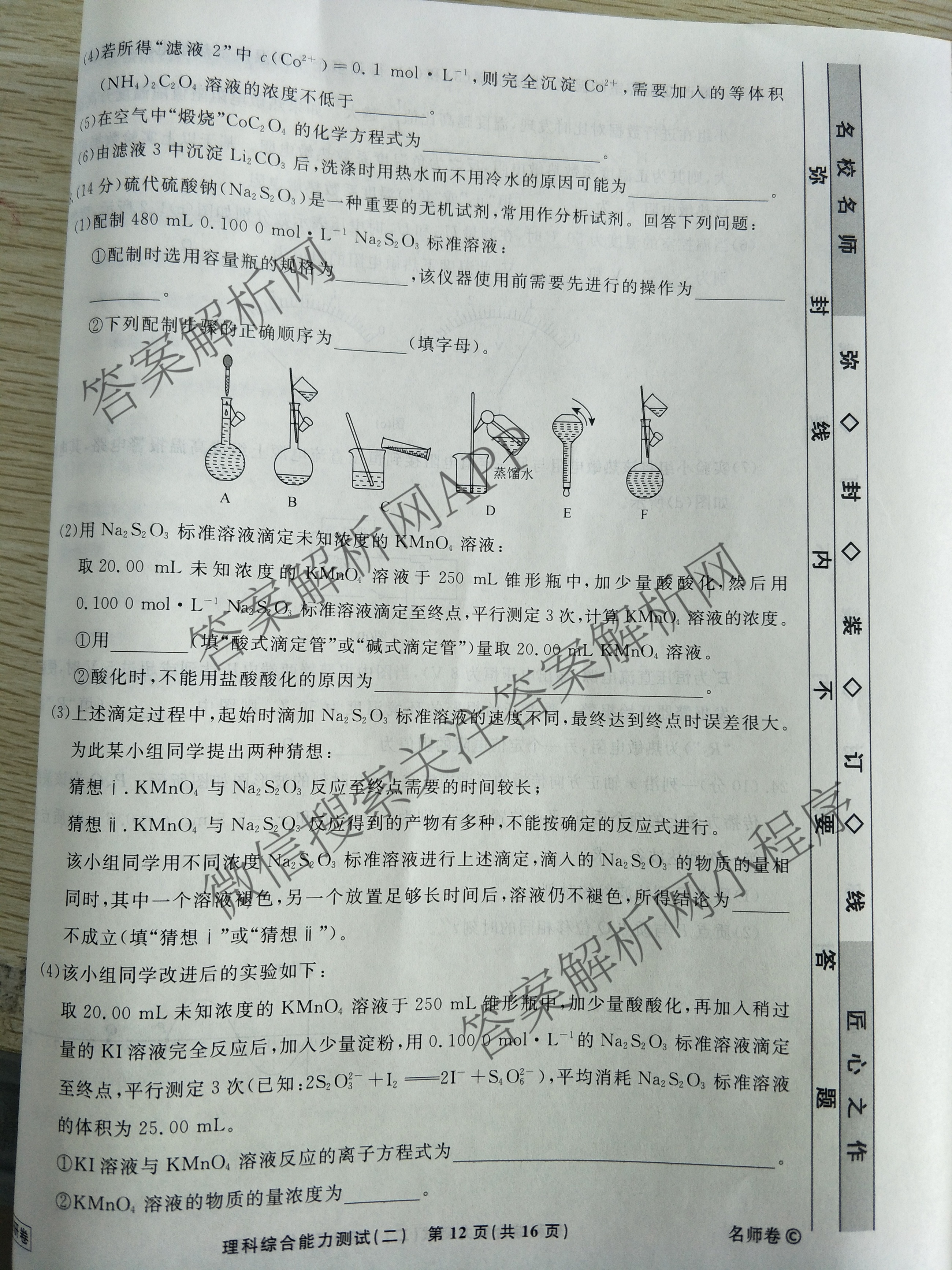 衡水名师卷·高考模拟调研卷 2024年普通高等学校招生全国统一考试模拟试题 理综(空心◇)(二)试题,目前分科卷答案网已经汇总了衡水名师卷·高考模拟调研卷 2024年普通高等学校招生全国统一考试模拟试题 理综(空心◇)(二)试题的各科答案和试卷,获取更多衡水名师卷答案解析,请在关注本站。