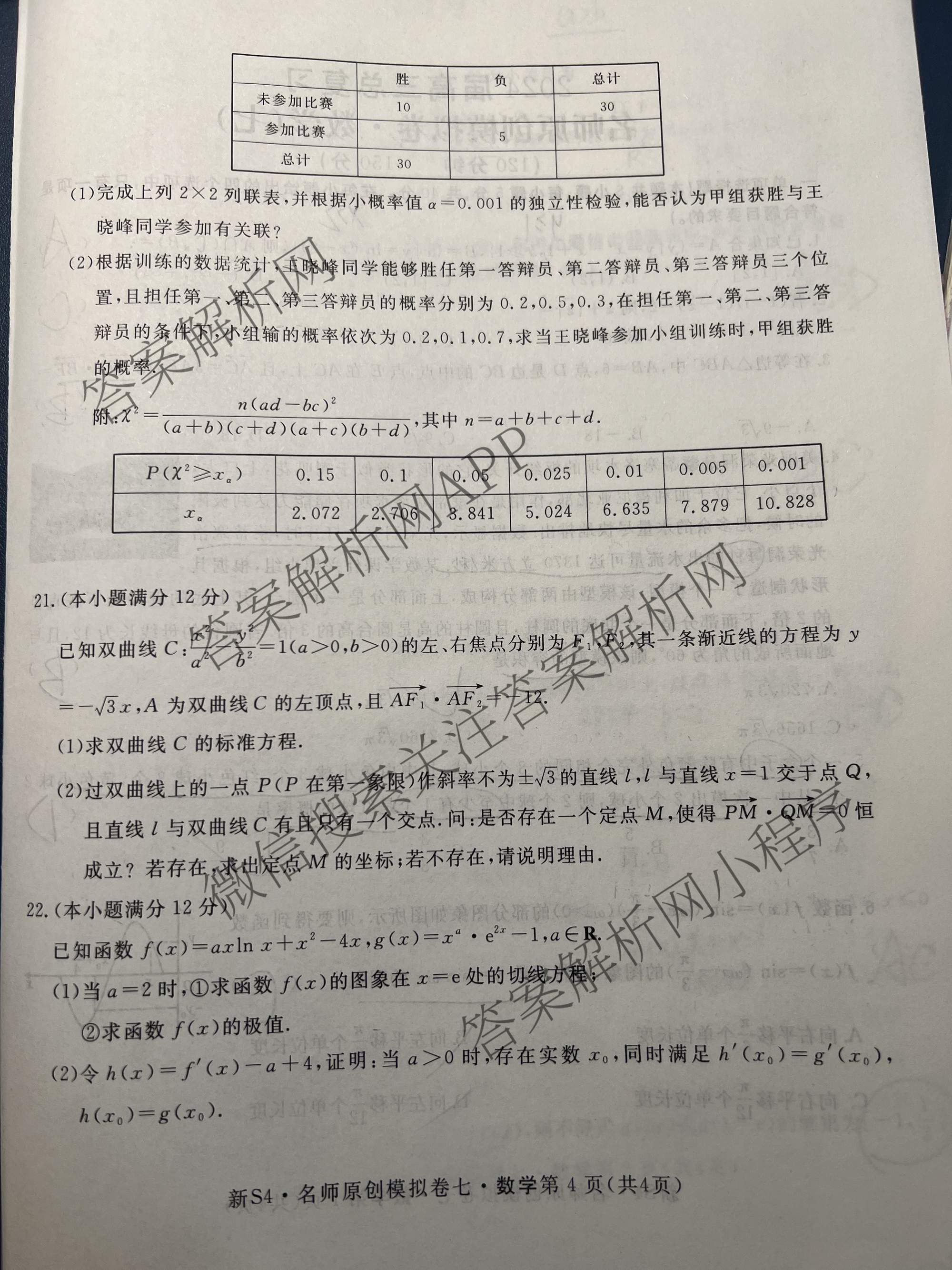 - 2024届高三总复习名师原创模拟 数学(新S4)(七)7答案
