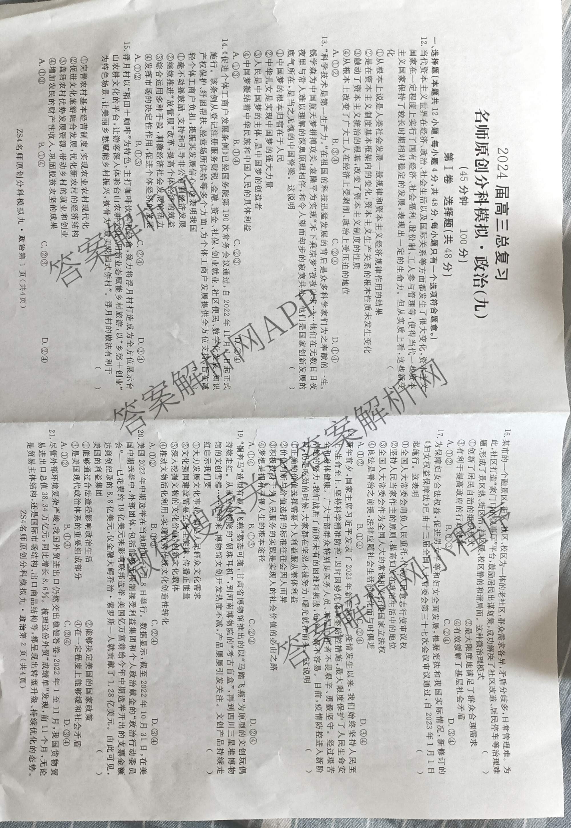 2024届高三总复习·名师原创分科模拟(九)9政治(ZS4)试题,目前分科卷答案网已经汇总了2024届高三总复习·名师原创分科模拟(九)9政治(ZS4)试题的各科答案和试卷,获取更多高三总复习·名师原创模拟答案解析,请在关注本站。