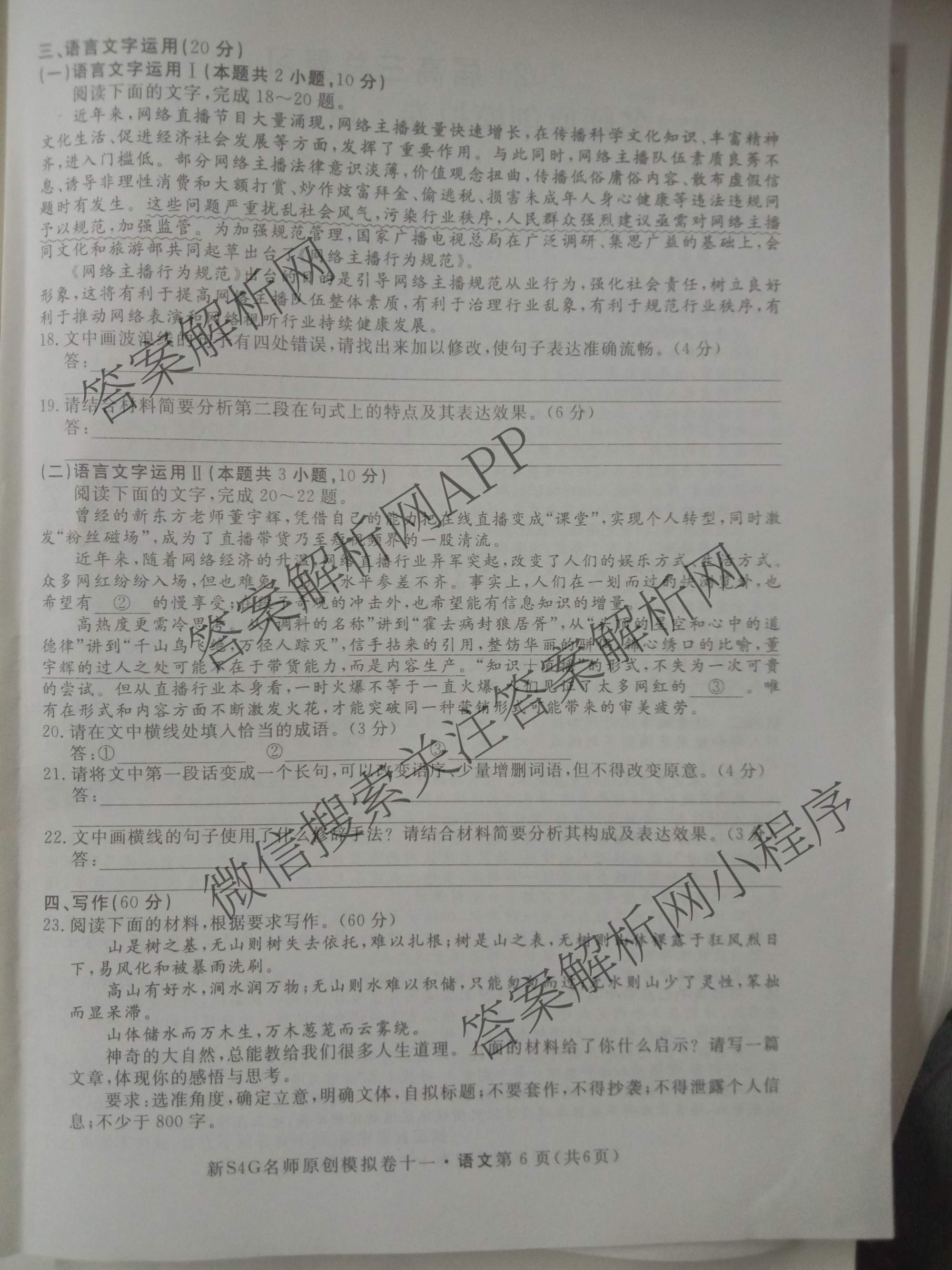 2024届高三总复习·名师原创模拟 语文(新S4G)(十一)11试题,目前分科卷答案网已经汇总了2024届高三总复习·名师原创模拟 语文(新S4G)(十一)11试题的各科答案和试卷,获取更多高三总复习·名师原创模拟答案解析,请在关注本站。