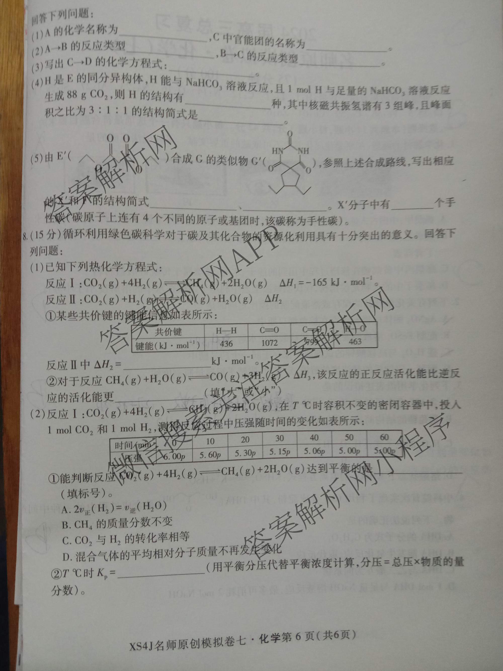 2024届高三总复习·名师原创模拟 化学(XS4J)(七)7试题,目前分科卷答案网已经汇总了2024届高三总复习·名师原创模拟 化学(XS4J)(七)7试题的各科答案和试卷,获取更多高三总复习·名师原创模拟答案解析,请在关注本站。