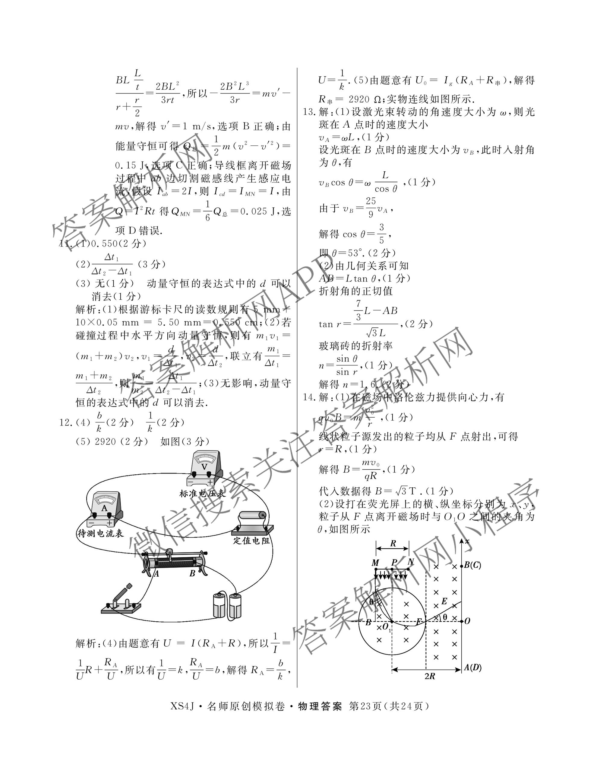 2024届高三总复习·名师原创模拟 物理(XS4J)(十二)12答案,目前分科卷答案网已经汇总了2024届高三总复习·名师原创模拟 物理(XS4J)(十二)12答案的各科答案和试卷,获取更多高三总复习·名师原创模拟答案解析,请在关注本站。
